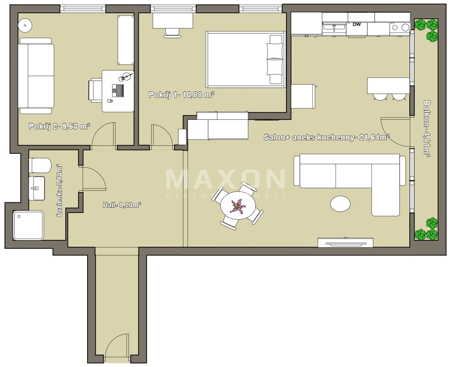 Lokal składa się z dwóch niezależnych pokoi oraz przestronnego salonu z otwartą kuchnią, co tworzy komfortową i nowoczesną przestrzeń do życia. Taki układ idealnie sprawdzi się zarówno dla rodziny, pary, jak i pod inwestycję na wynajem.