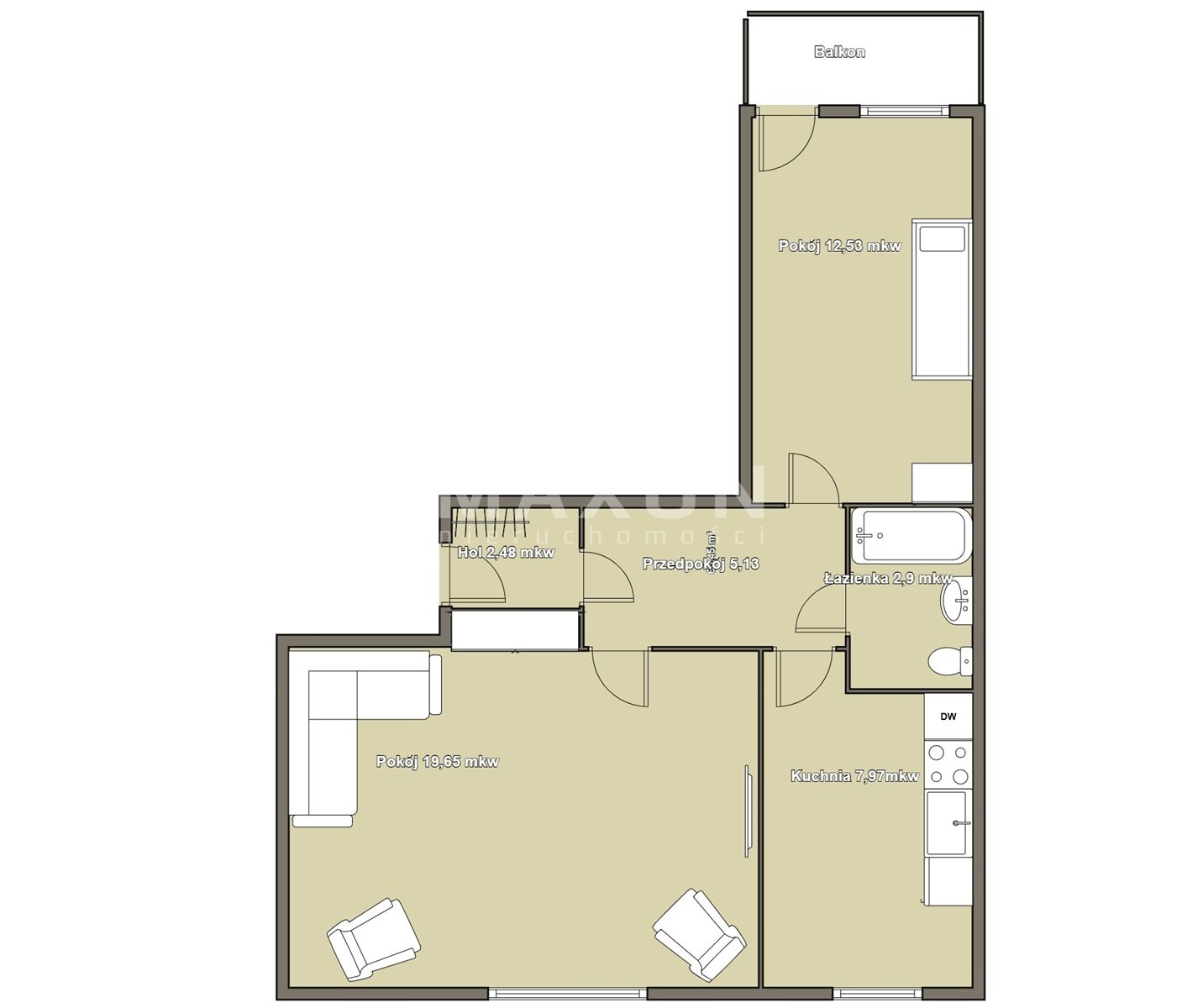 19,65 mkw salon: jasny, z widokiem na zielone podwórko. Ustawny z miejscem na strefę wypoczynkowa, stół jadalny oraz możliwość zaaranżowania aneksu kuchennego.