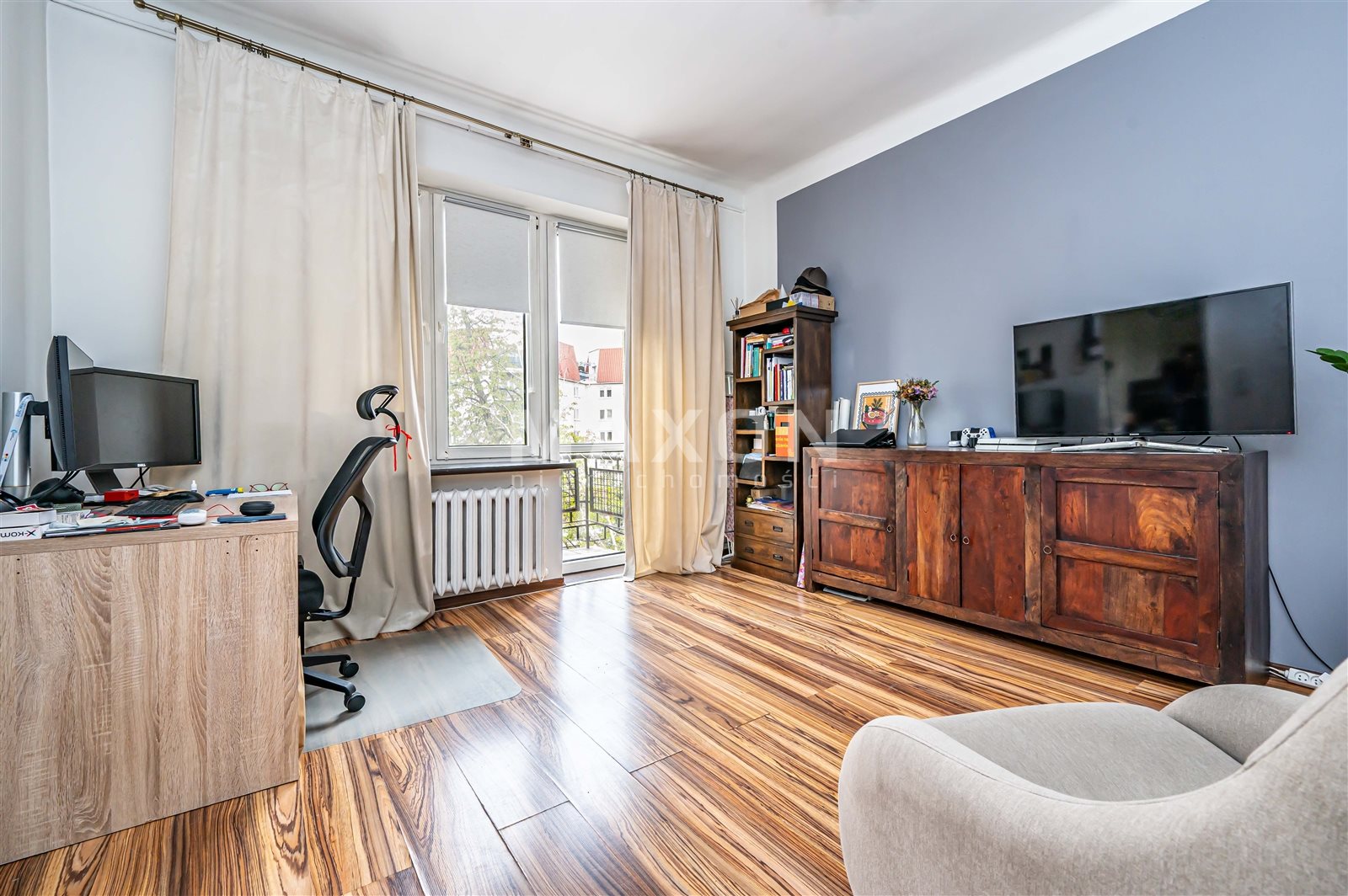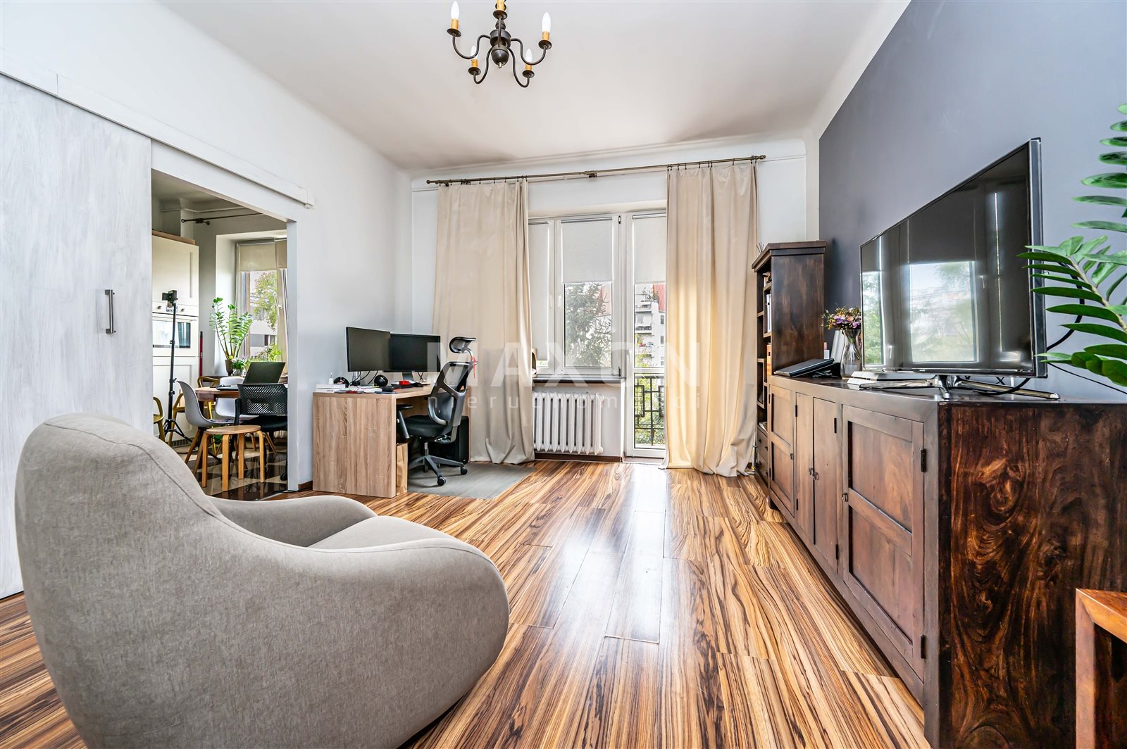 Mieszkanie łączy charakter starszego budownictwa z komfortem po remoncie — kilka lat temu lokal przeszedł generalny remont, obejmujący również wymianę instalacji, w tym elektrycznej.