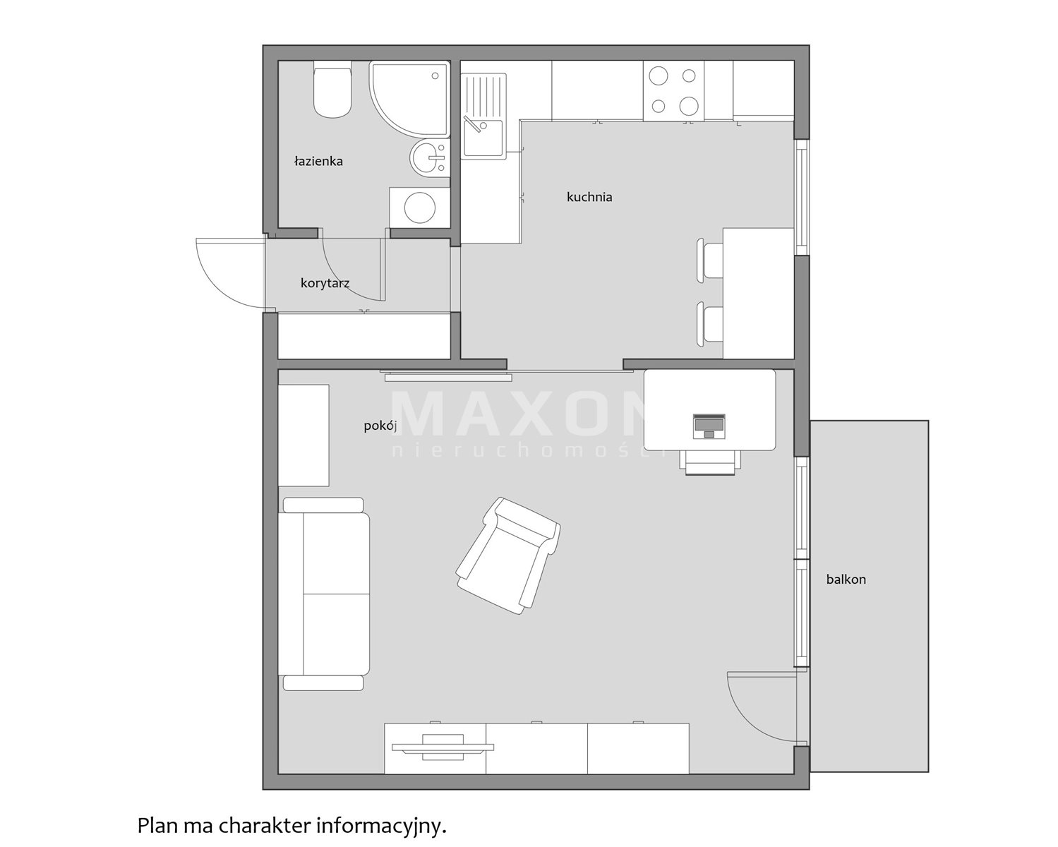 - przestronnego pokoju z wyjściem na balkon,