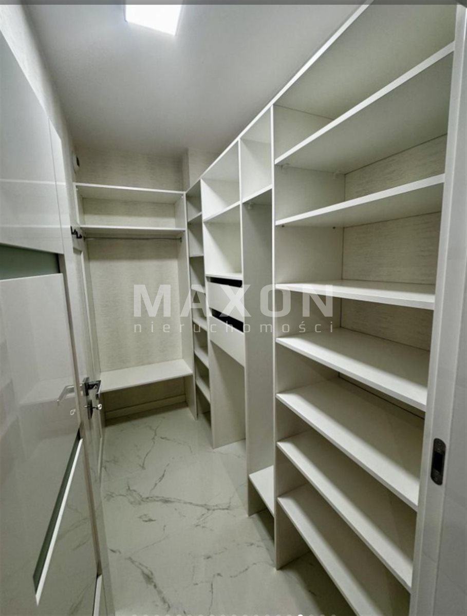 Funkcjonalna, w pełni zabudowana garderoba (ok. 4 mkw) z półkami, szufladami i drążkami.