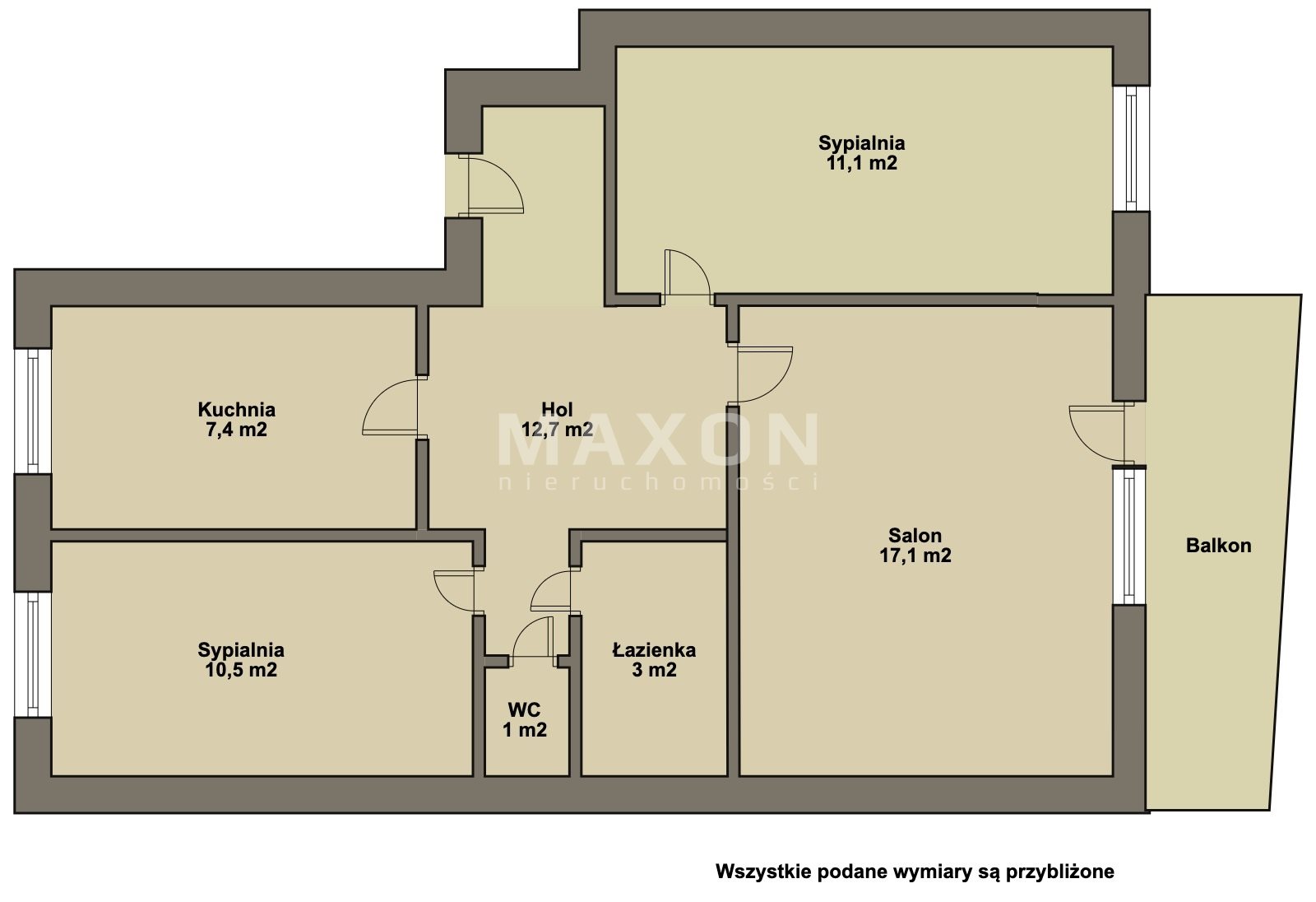 Mieszkanie na sprzedaż - 63,00 m2, 3 pokoje