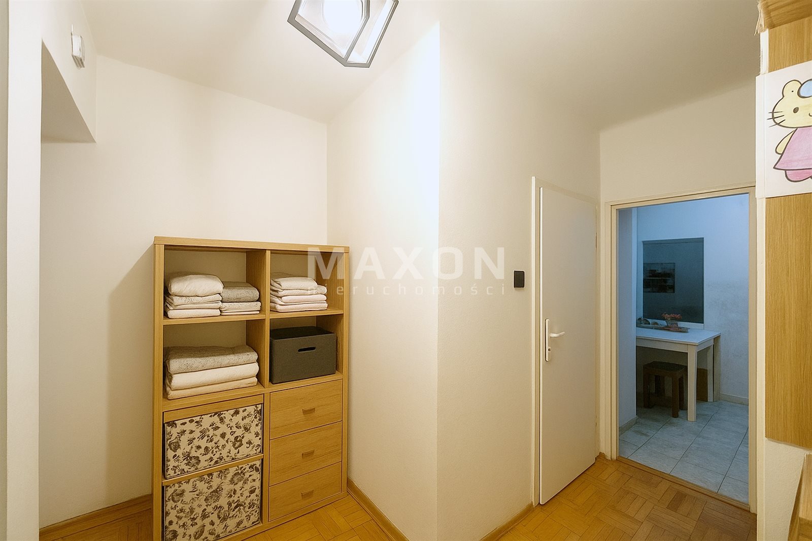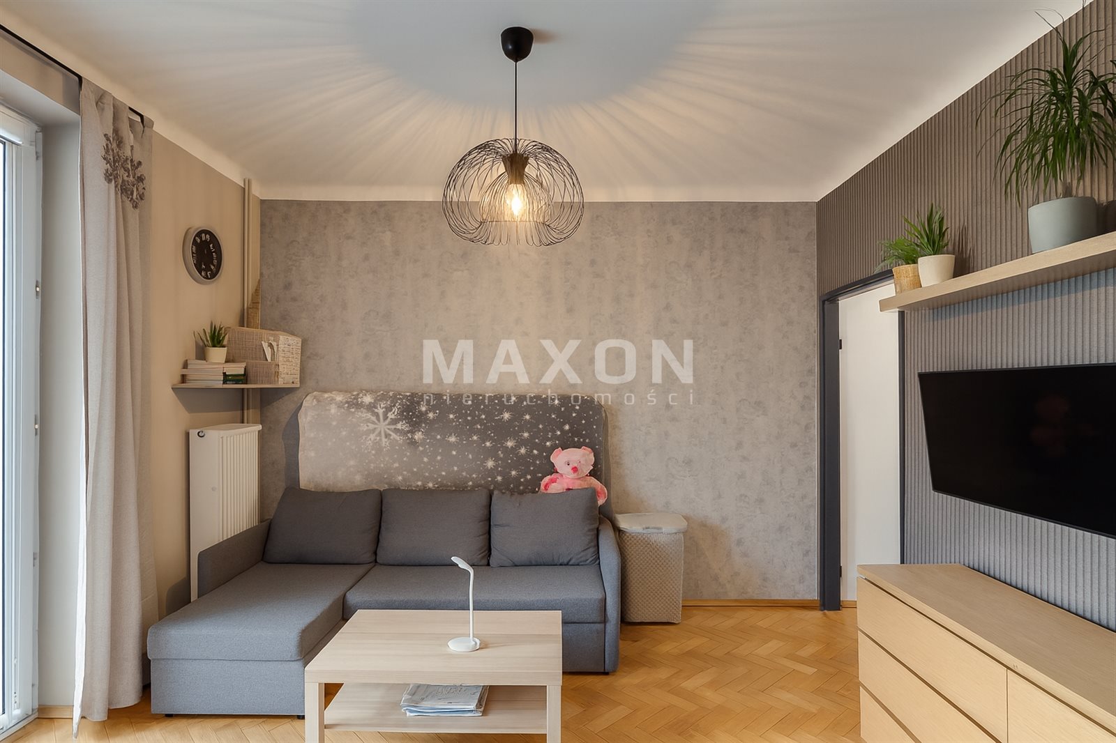 Mieszkanie jest narożne, jasne i dobrze doświetlone. Salon posiada ekspozycję południową, co zapewnia naturalne światło przez większą część dnia.