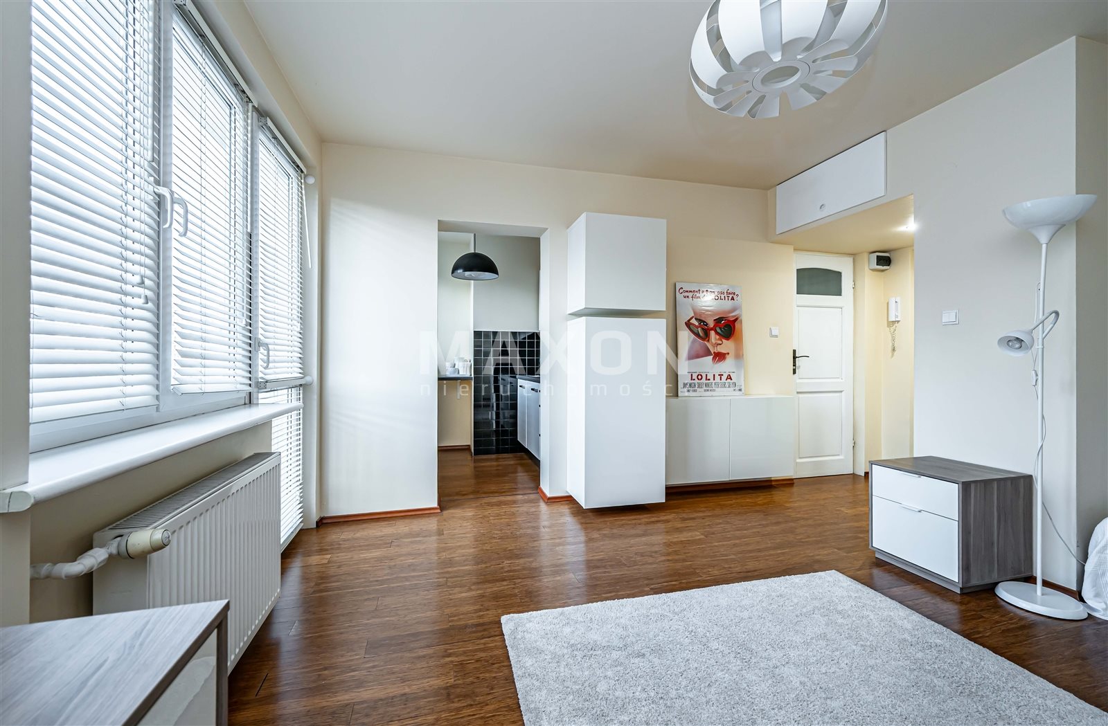 - jasny pokój dzienny z balkonem francuskim