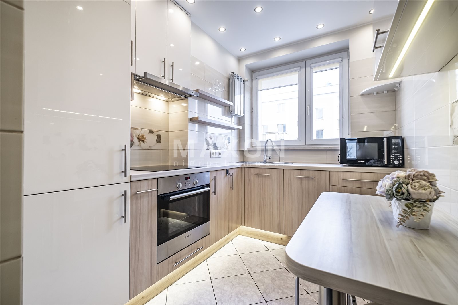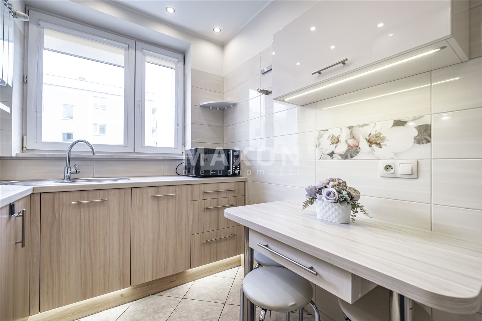 W pełni wyposażona kuchnia, obszerne szafy i wygodny rozkład to zdecydowane atuty mieszkania.
