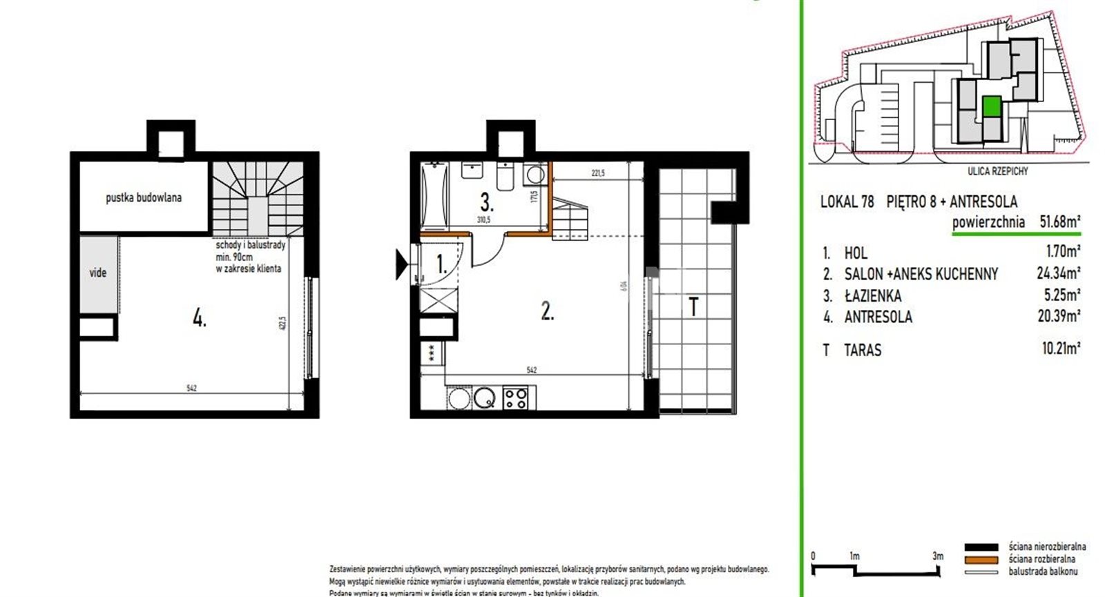 - Antresoli (20,39 m²) – z dużym potencjałem aranżacyjnym, można tu urządzić sypialnię, biuro lub strefę relaksu.