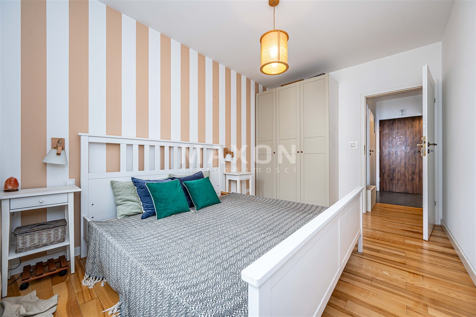 Sypialnia z komfortową szafą i łożem małżeńskim.
