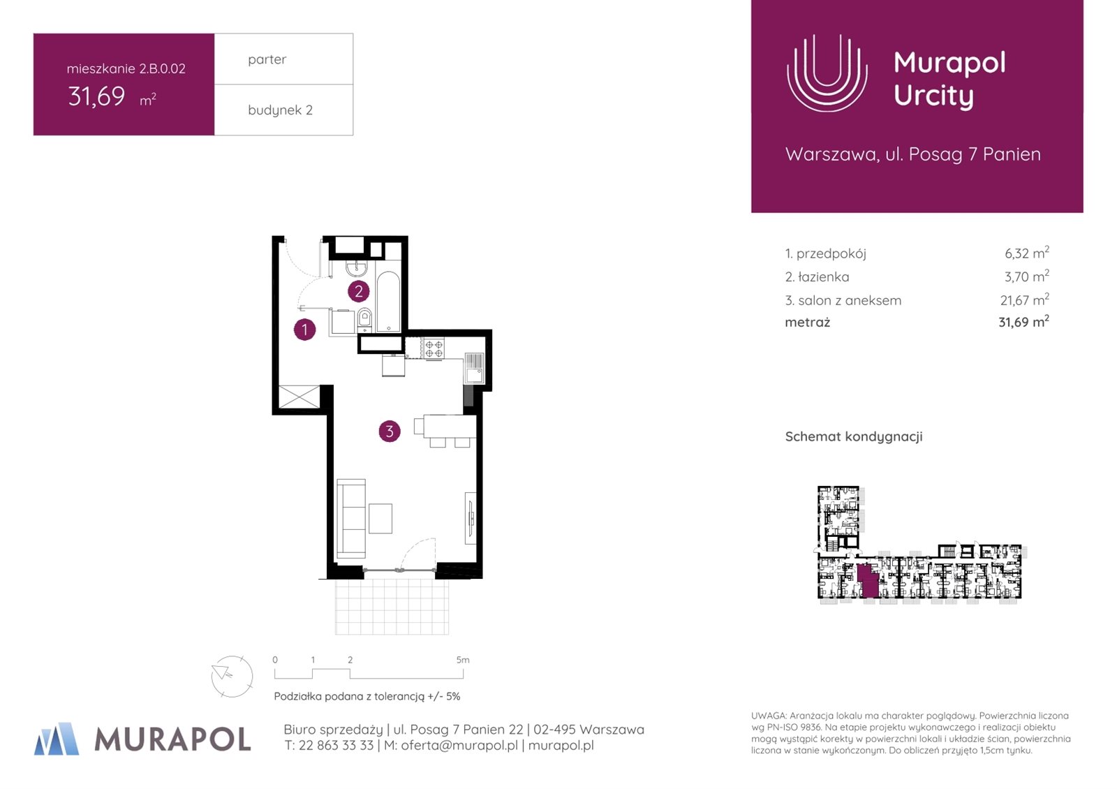 Mieszkanie na sprzedaż - 31,69 m2, 1 pokój