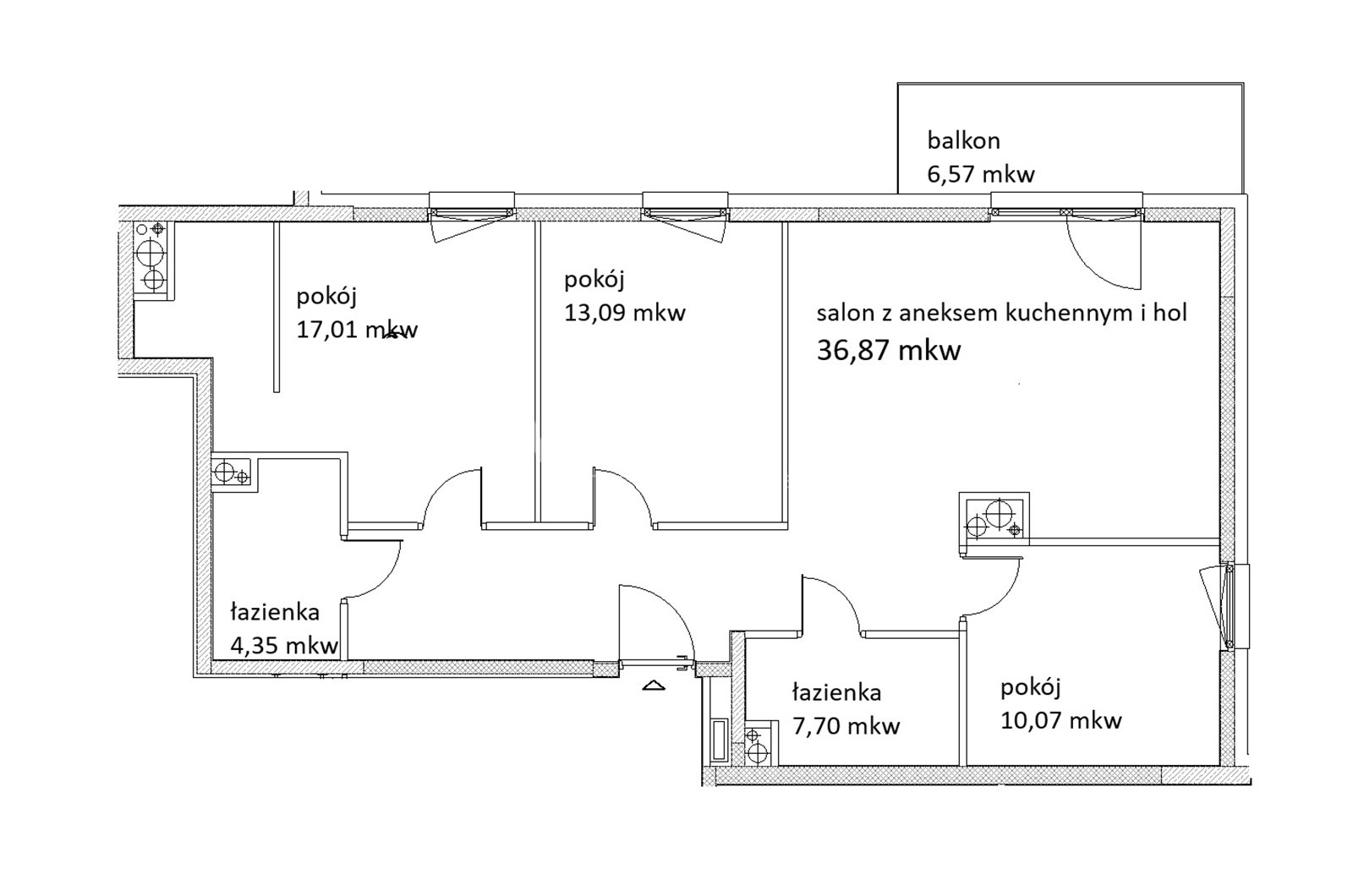 Mieszkanie jest w stanie deweloperskim co umożliwia dowolną aranżację i dostosowanie projektu wykończenia do własnych potrzeb i upodobań.