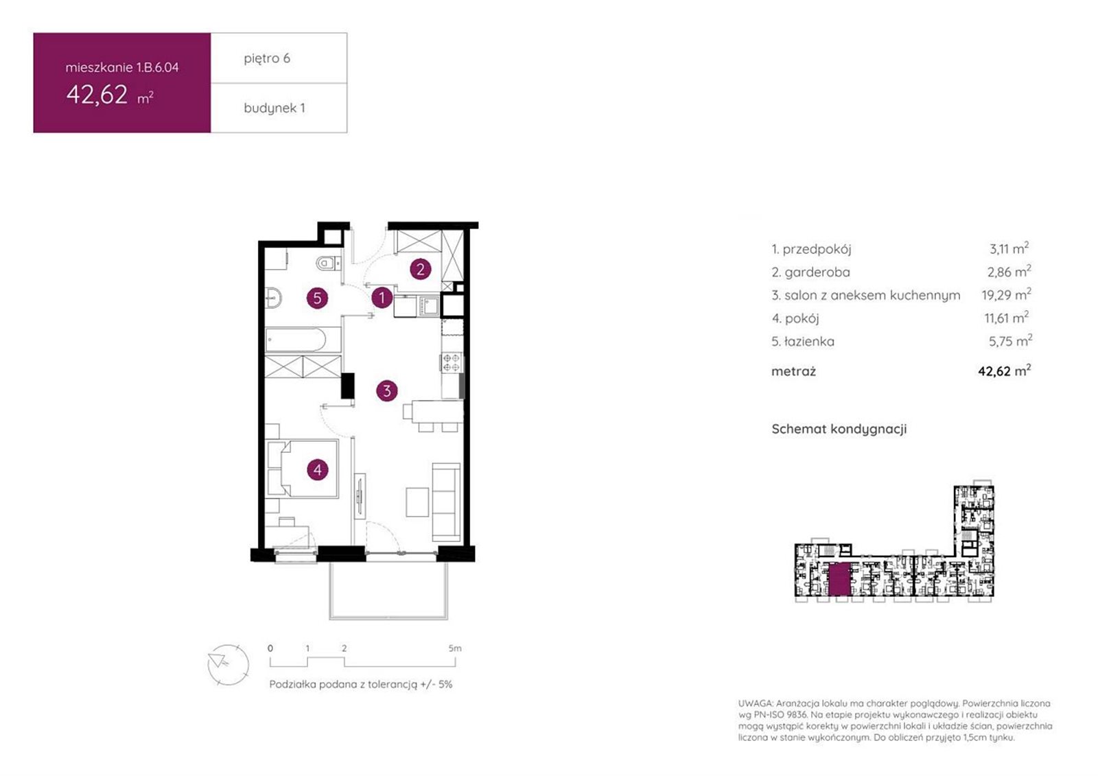 Mieszkanie na sprzedaż - 42,62 m2, 2 pokoje