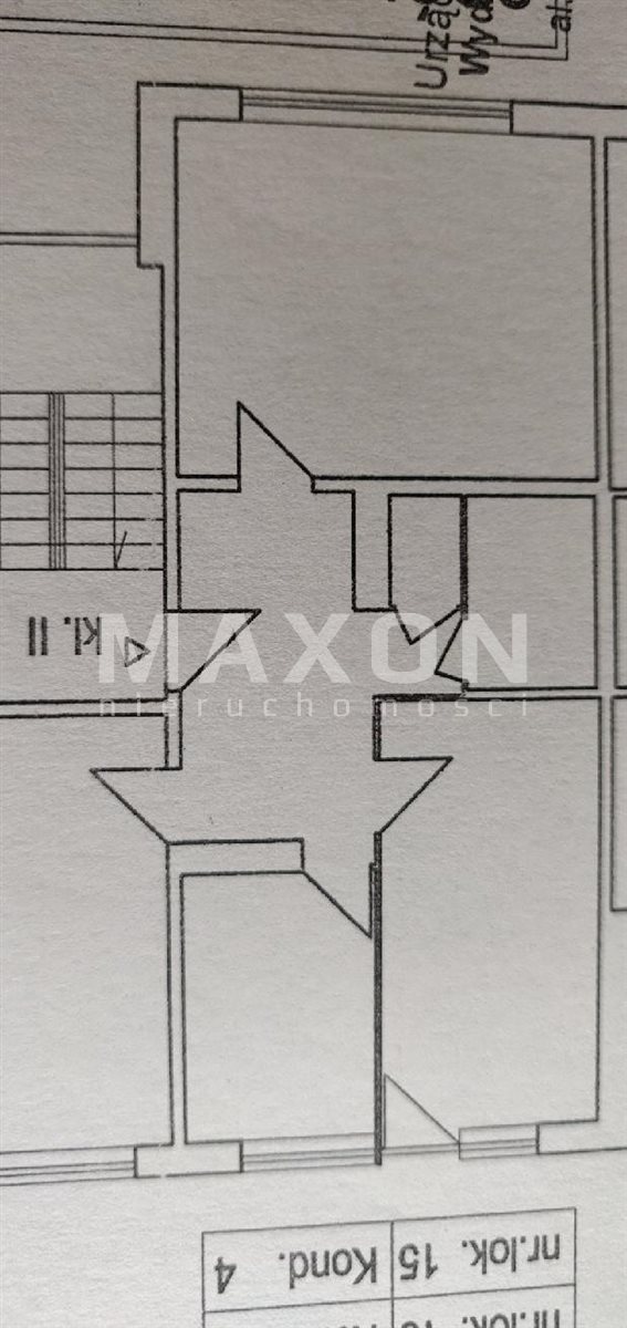 Mieszkanie pierwotnie składało się z 3-ech pokoi , obecnie są 4. Bez problemu można przywrócić poprzedni układ ( na planie pierwotny układ, pokój po lewej stronie został podzielony na dwa ) .