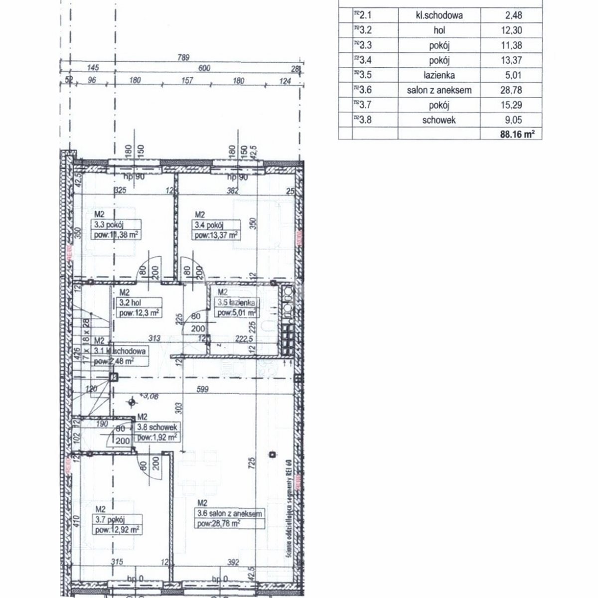 Łącznie: 88,16 m²