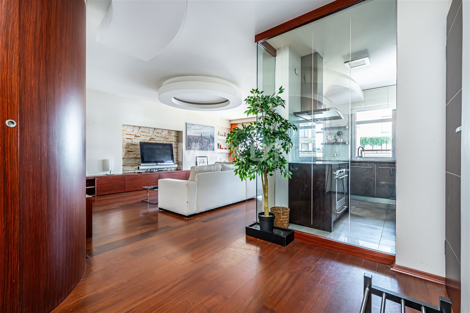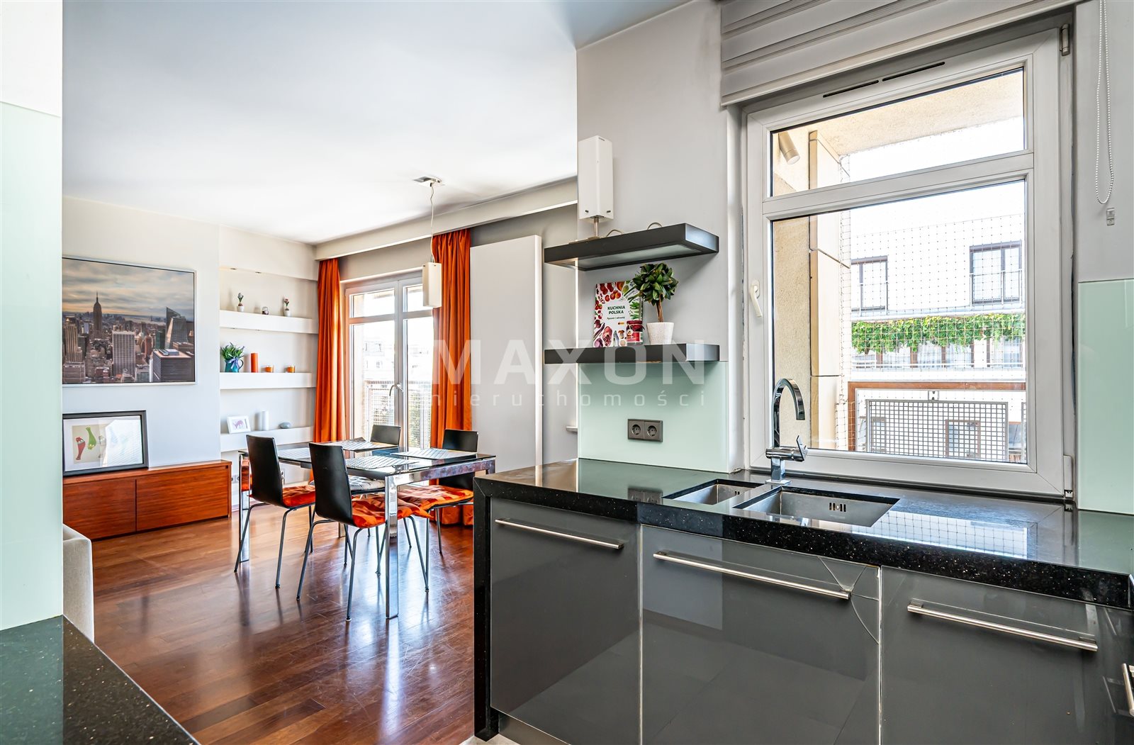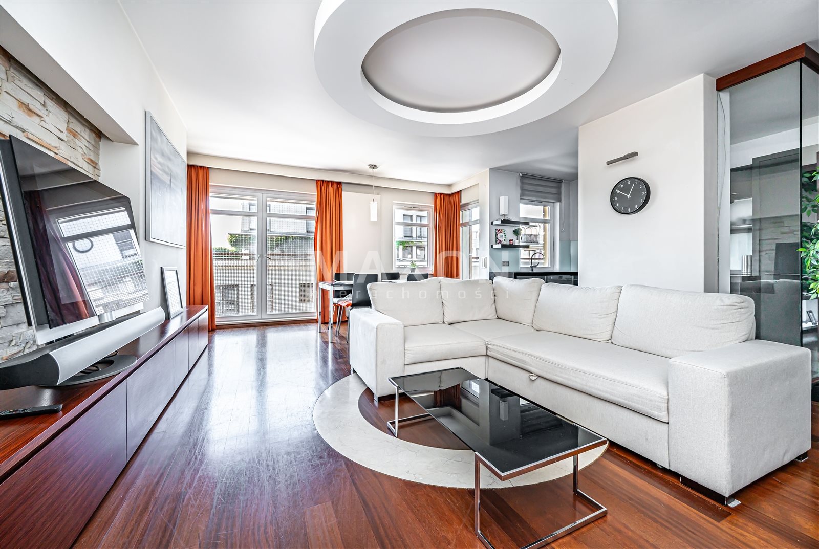Mieszkanie jest w pełni umeblowane i wyposażone w sprzęt RTV, AGD i system zarządzania oświetleniem.