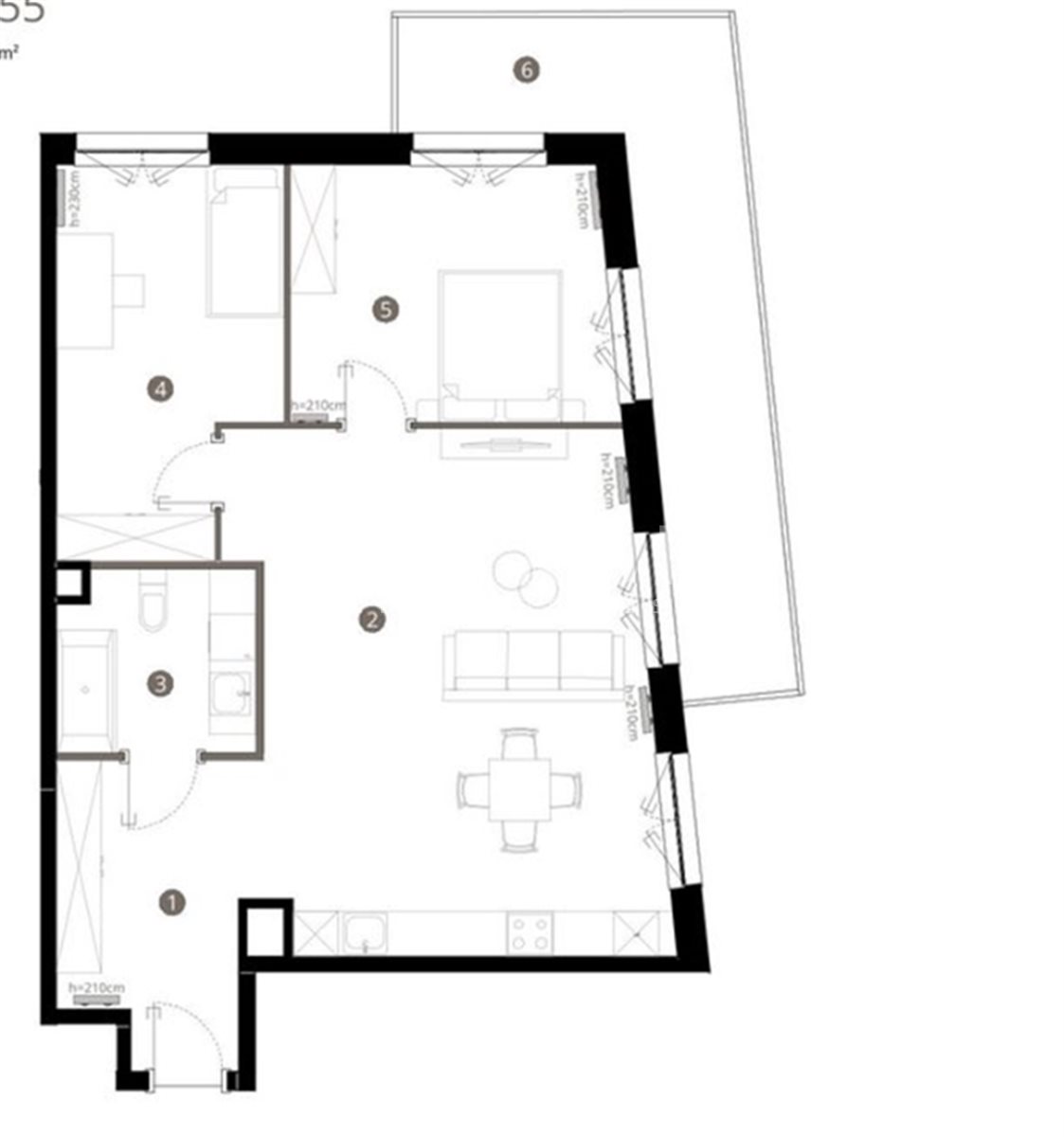 Powierzchnia mieszkania to duży, ustawny salon z aneksem kuchennym, 2 pokoje, łazienka, balkon (17,97 mkw).