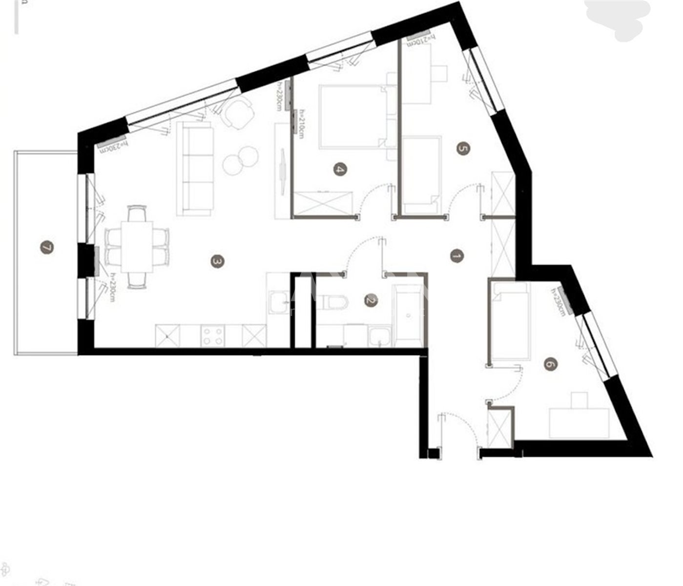 Powierzchnia mieszkania to duży, ustawny salon z aneksem kuchennym, 3 pokoje, łazienka, balkon (7,60 mkw).