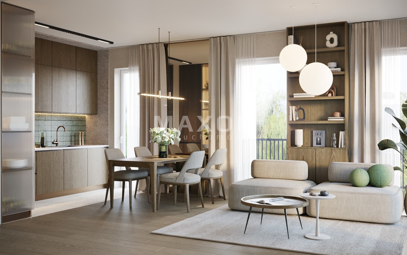Mieszkanie wyróżnia się funkcjonalnym układam pomieszczeń, dużym balkonem. Dzięki przemyślanej orientacji budynków, mieszkanie jest doskonale doświetlone naturalnym światłem, co zapewnia jasne i przyjazne wnętrza.