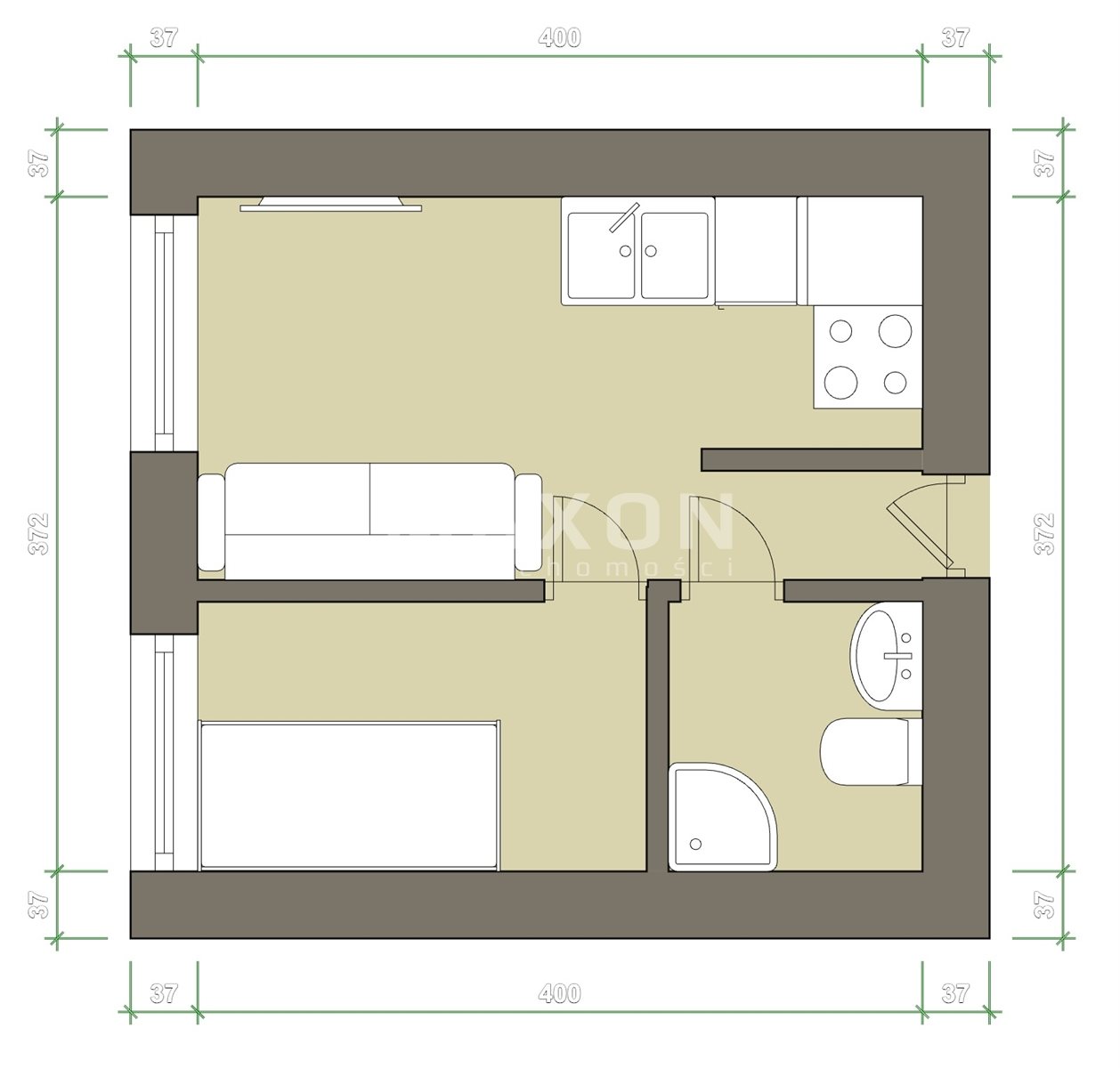Mieszkanie ma powierzchnię 32 m² i zostało zaplanowane z myślą o komforcie i funkcjonalności. Składa się z dwóch pokoi: przestronnego salonu z aneksem kuchennym oraz przytulnej sypialni. W środku znajdziesz: