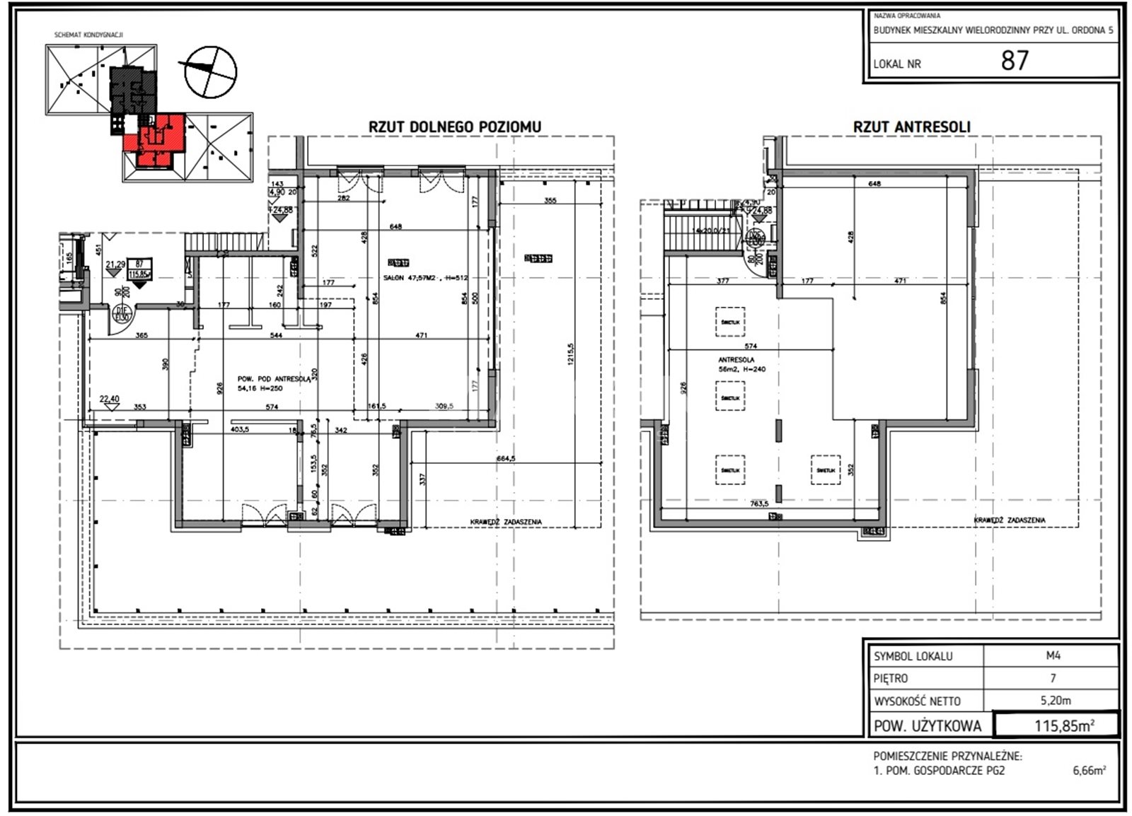 ✔ Powierzchnia głównego mieszkania: 115,85 mkw