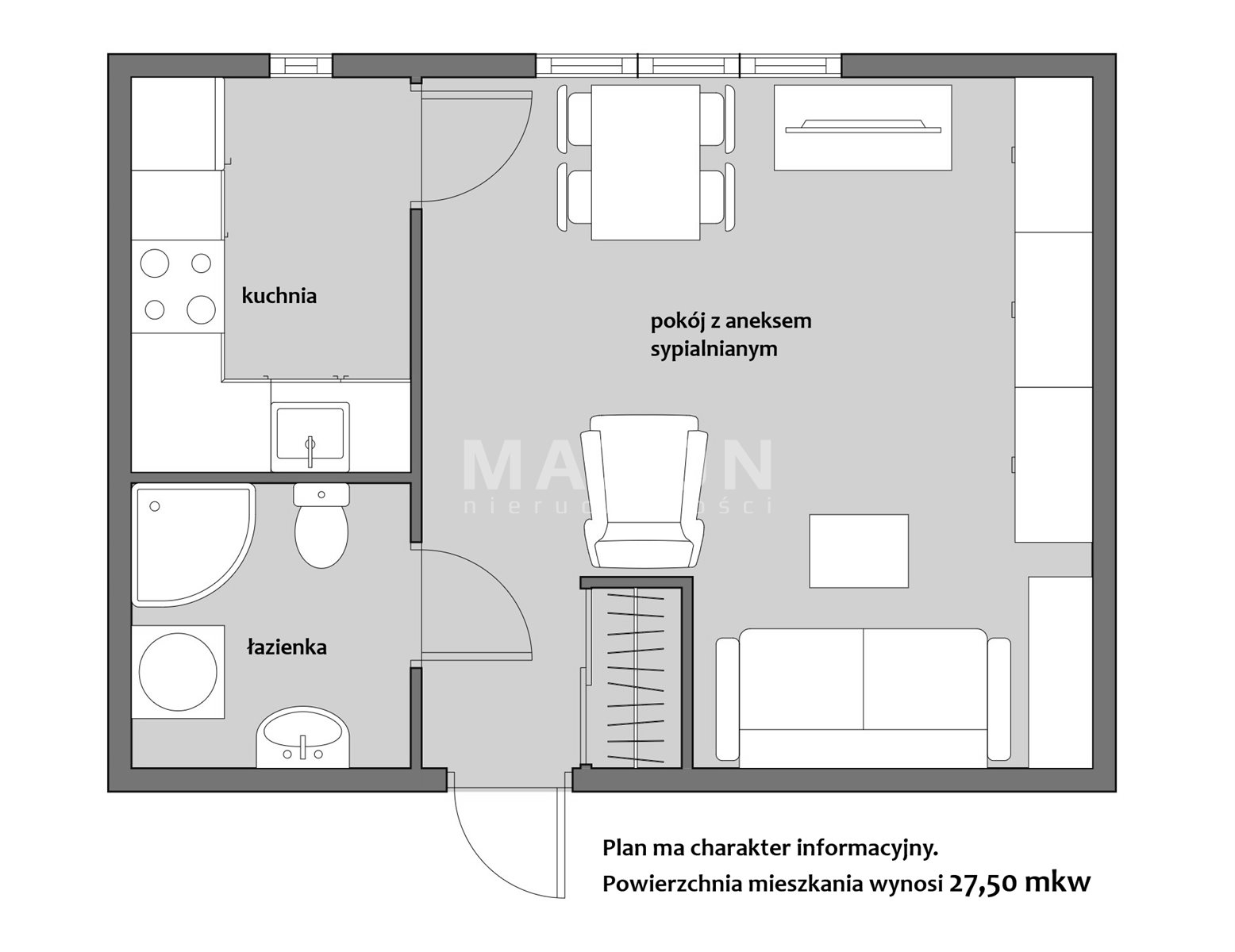 Mieszkanie na sprzedaż - 27,50 m2, 1 pokój