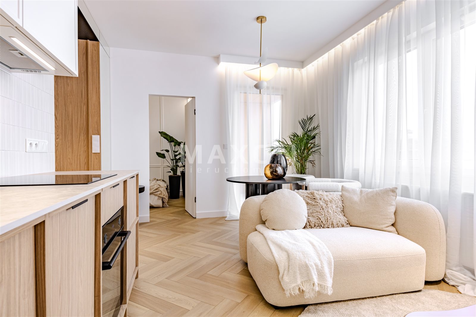 Mieszkanie jest bardzo jasne, z loggią od strony patio. Zostało świeżo wykończone pod okiem renomowanego architekta wnętrz, co gwarantuje nowoczesny styl, funkcjonalność i wysoki komfort.