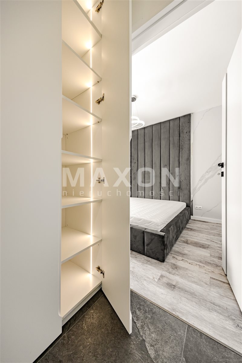 W przedpokoju znajduje się funkcjonalna i przestronna szafa w zabudowie oraz nowoczesne oświetlenie LED.