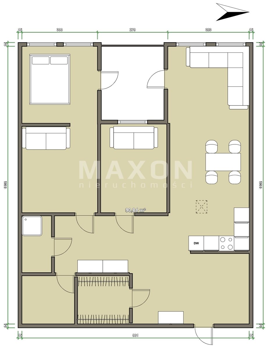 Mieszkanie na sprzedaż - 91,00 m2, 3 pokoje