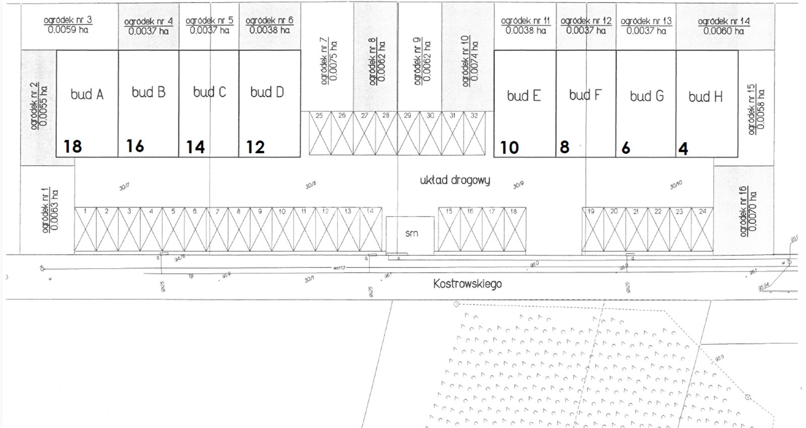 - dwa numerowane miejsca postojowe na terenie osiedla