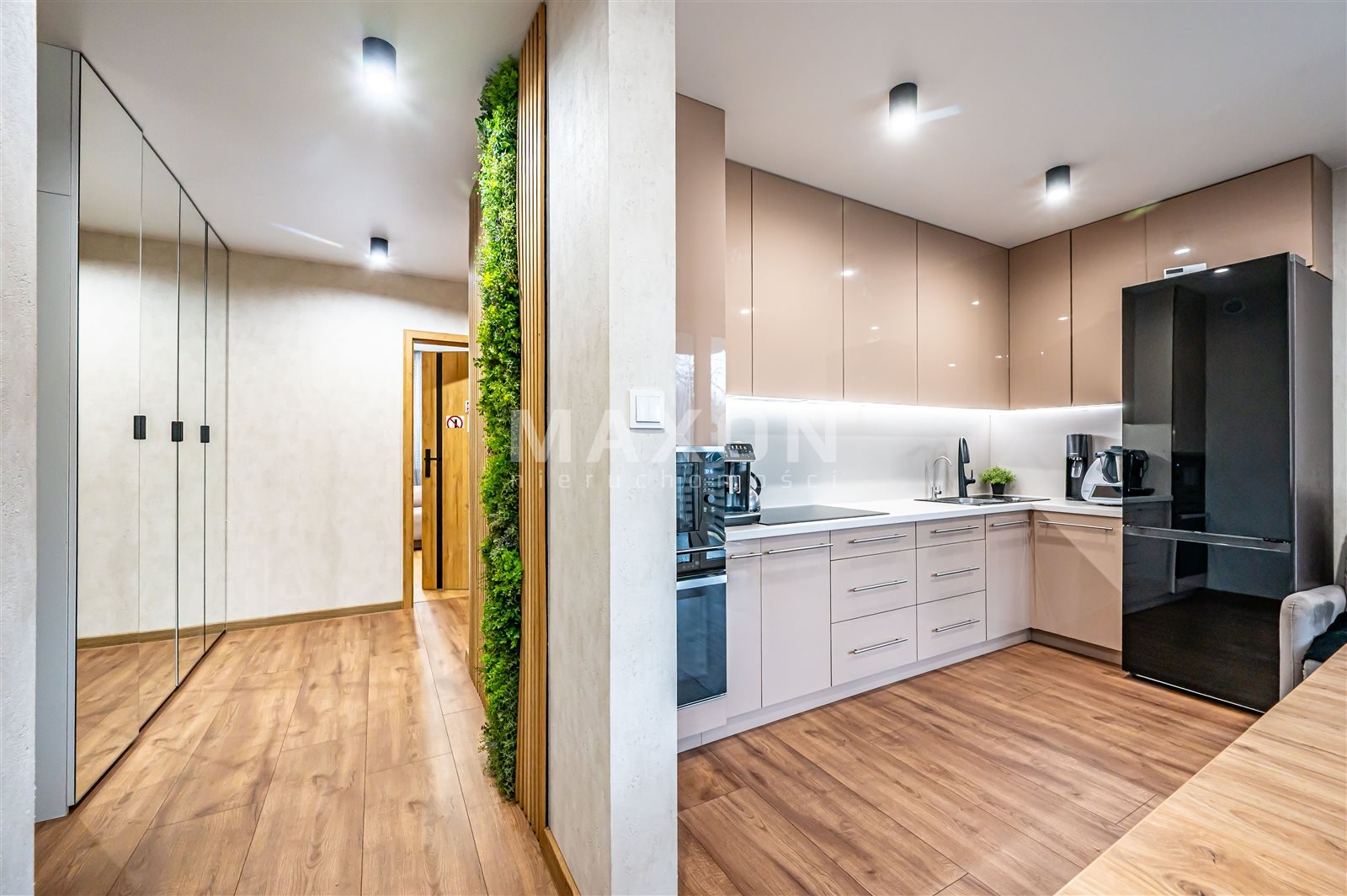 • Kuchni – w pełni wyposażona w sprzęty AGD: lodówka, piekarnik, płyta indukcyjna, zmywarka oraz komplet mebli,