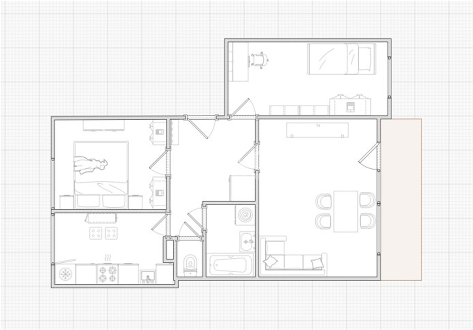 Mieszkanie ma bardzo ustawny i praktyczny rozkład pomieszczeń: