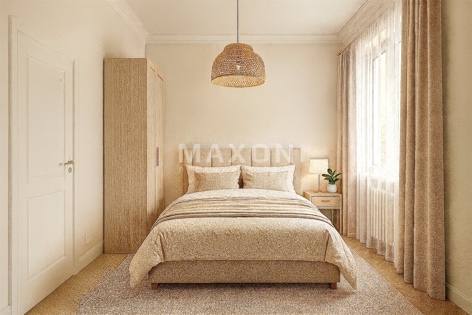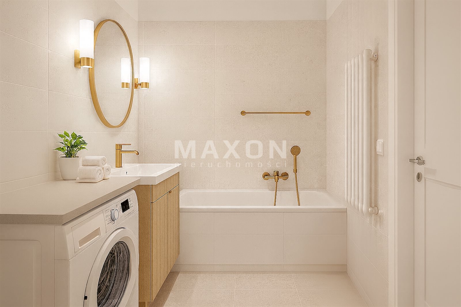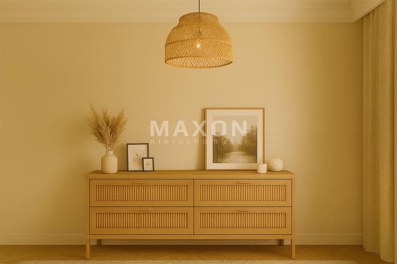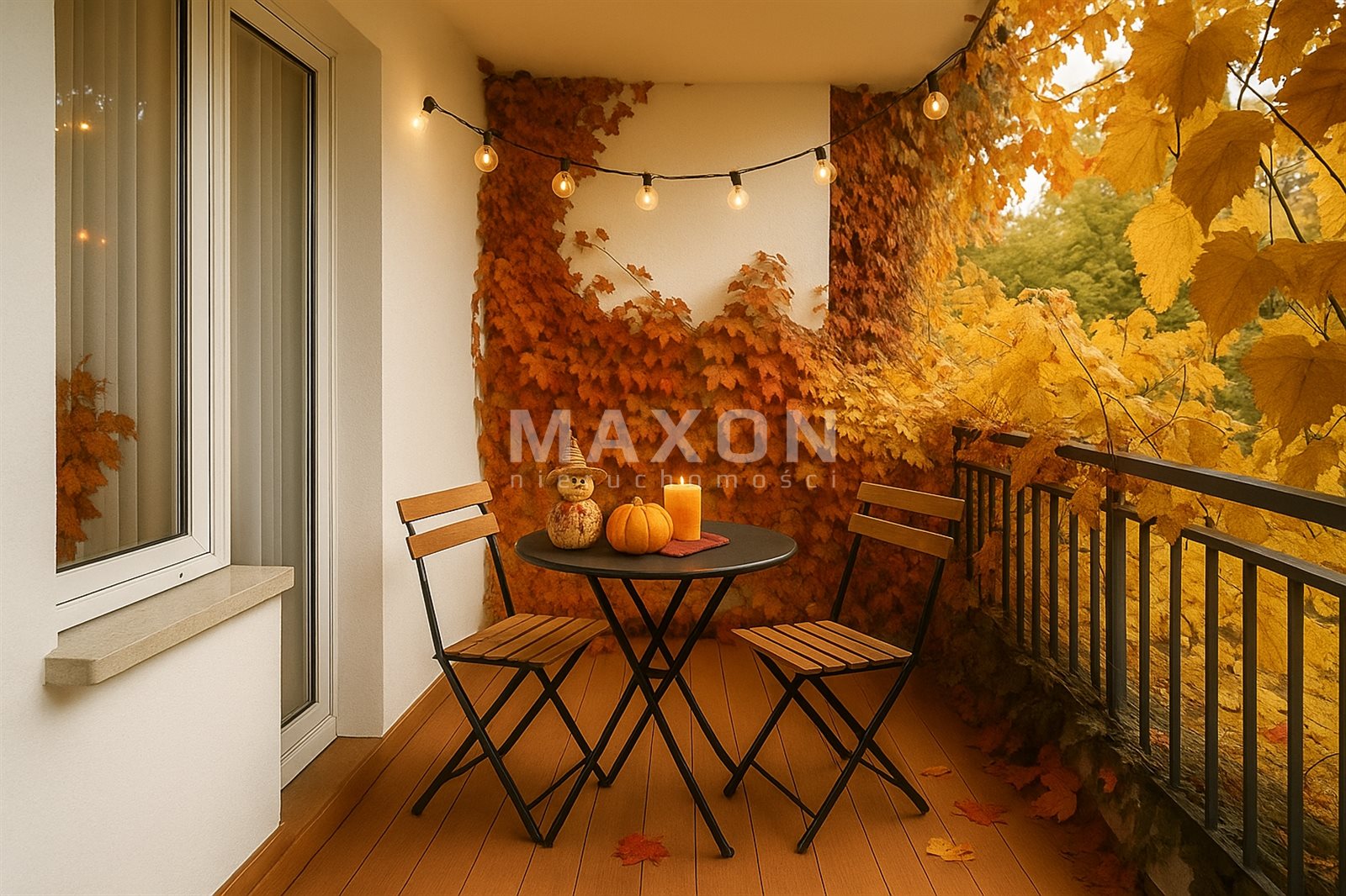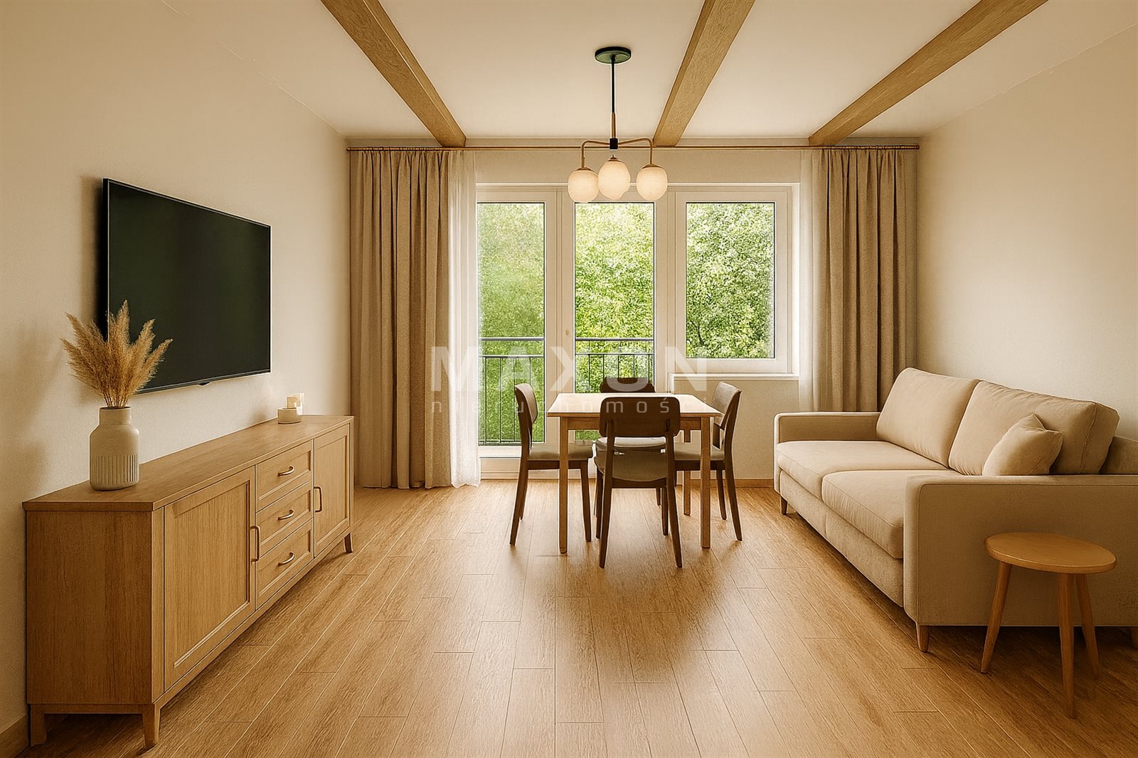 - słoneczny salon z wyjściem na balkon,
