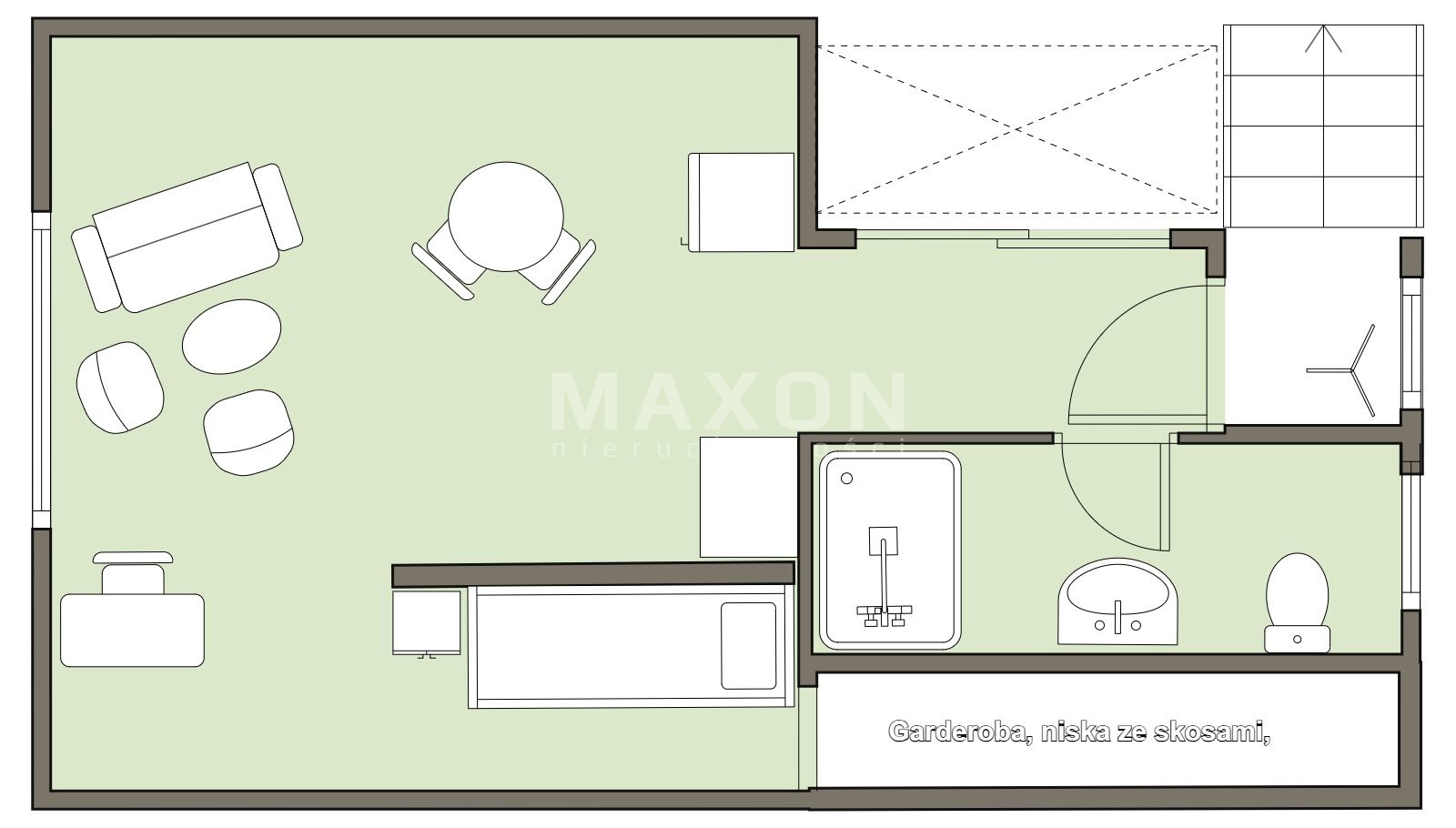 - aneksu sypialnianego z małą garderobą (ok 4.5 m2),