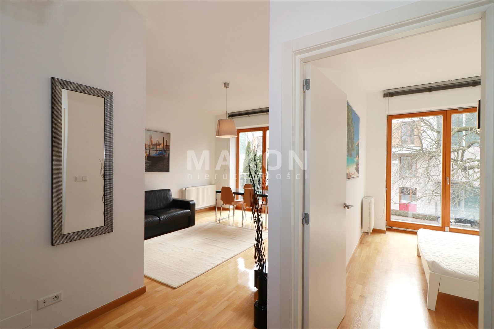Duże okna w salonie i sypialni wychodzą na stronę południowo-zachodnią. Cicha, spokojna lokalizacja. W najbliższej okolicy: park (Pole Mokotowskie), restauracje.