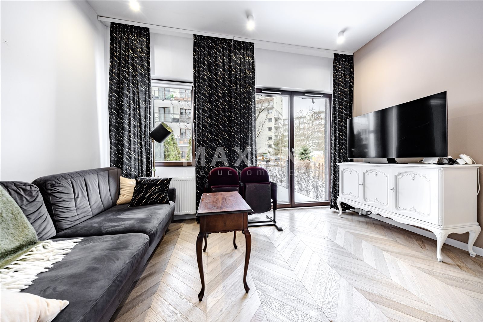 Do wynajęcia wyjątkowe mieszkanie o powierzchni 52,09 mkw, położone na parterze nowoczesnego budynku z windą, na kameralnym, strzeżonym osiedlu przy ul. Woronicza.