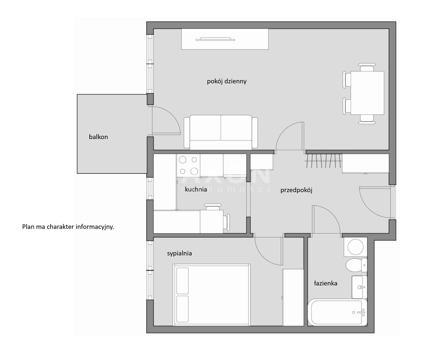 Oferujemy do wynajęcia wygodne, rozkładowe 2-pokojowe mieszkanie z dużym balkonem.