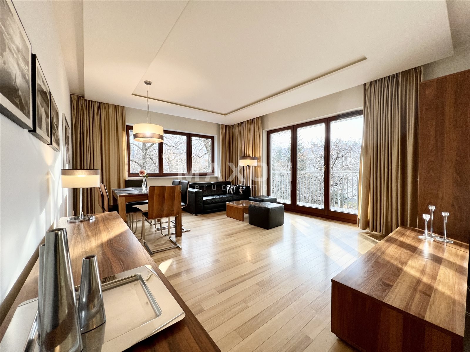 Nowoczesny, luksusowy apartament, wykończony w bardzo wysokim standardzie, usytuowany na 2. piętrze niskiego budynku z oknami wychodzącymi na południowy wschód i południowy zachód.