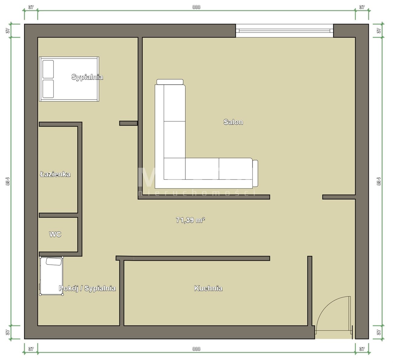 • Loggia poszerzająca część dzienną, idealna jako miejsce do wypoczynku,