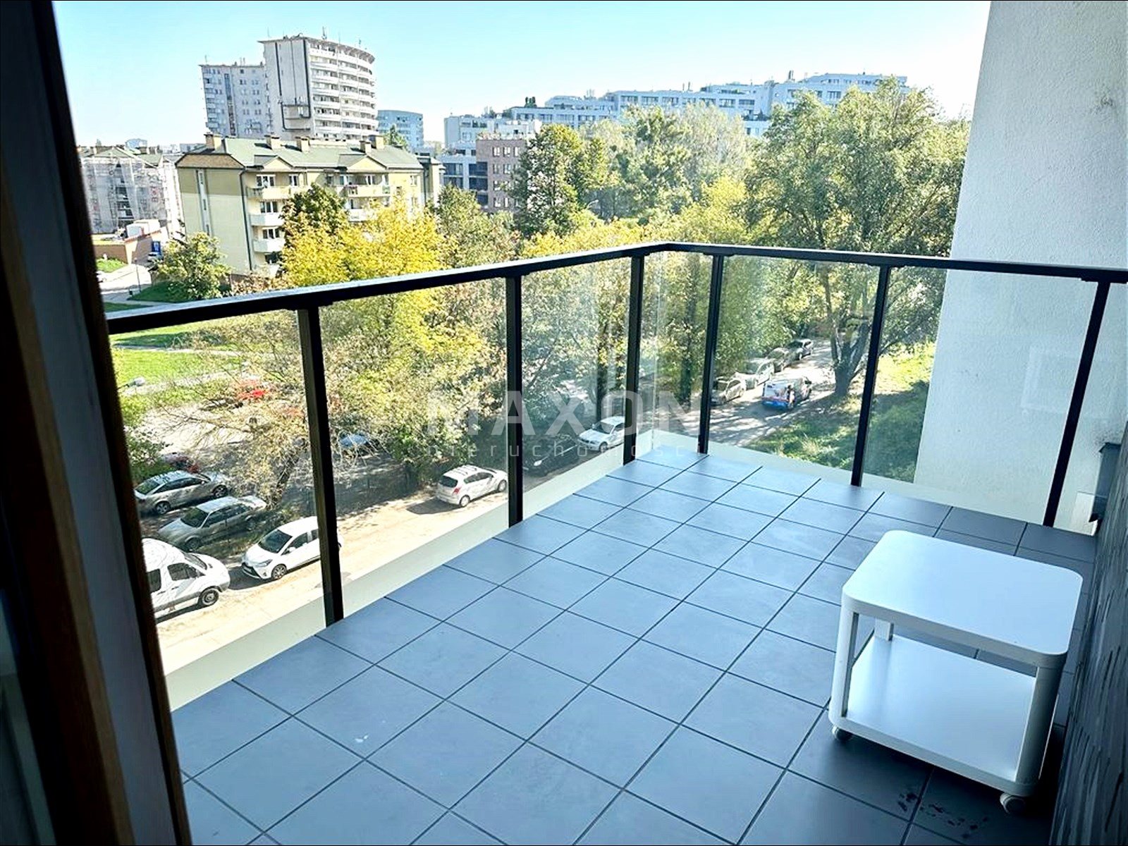 Balkon: Przestronny, z możliwością postawienia stołu i roślin doniczkowych, z widokiem na zieleń.