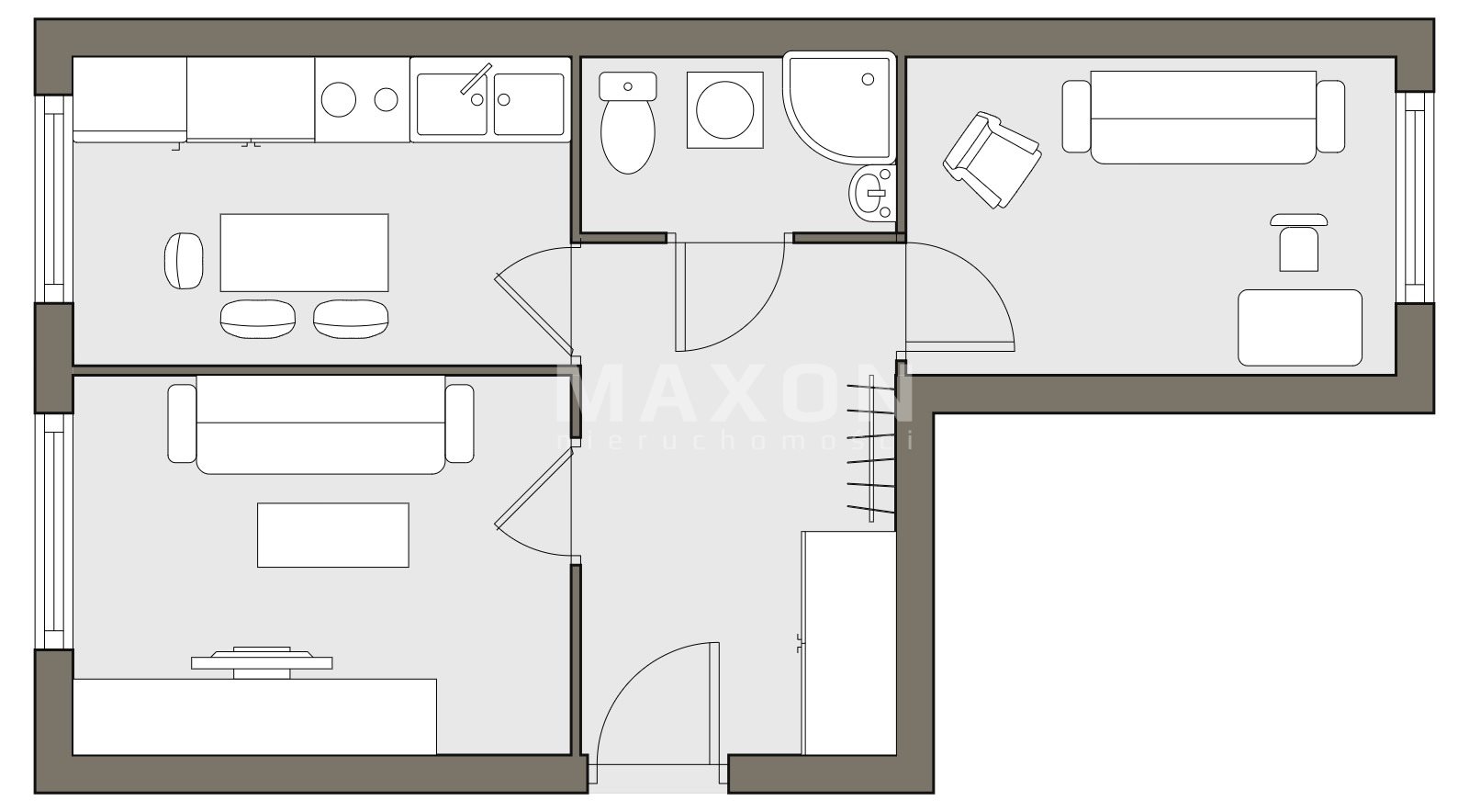 Dwa niezależne pokoje z osobną kuchnią