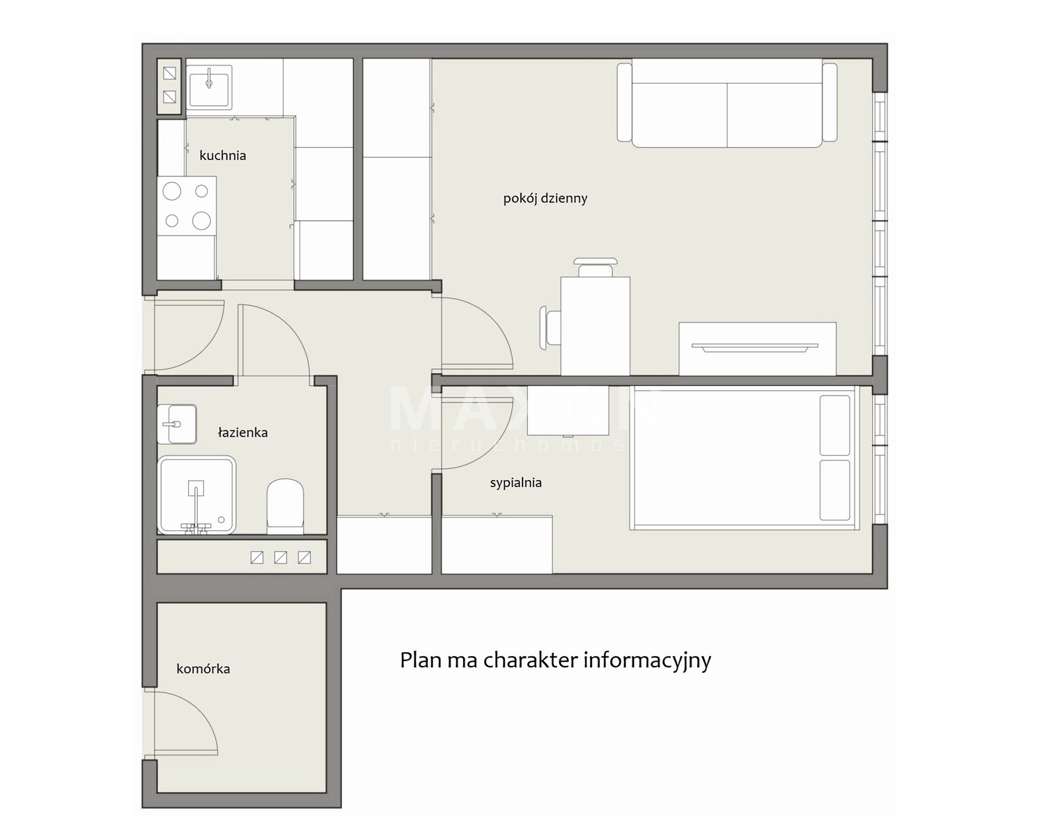 Dwa niezależne pokoje z osobną kuchnią