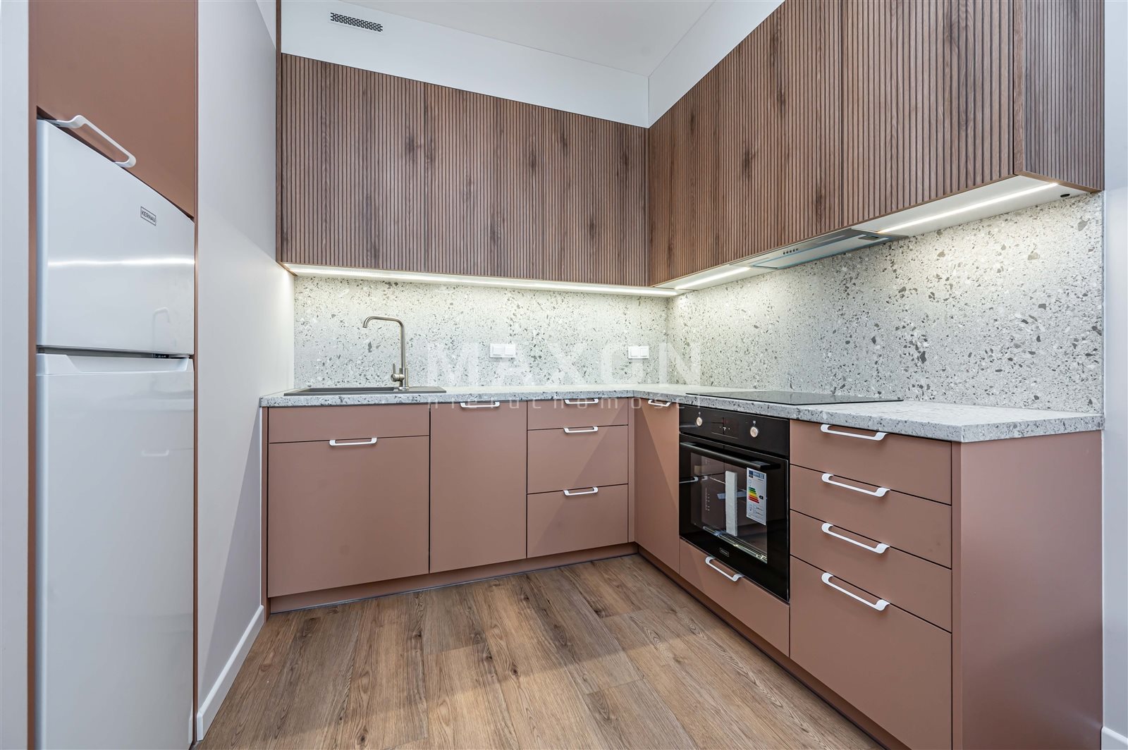 – salon 18 m2 z rozkładaną sofą i stołem, z aneksem kuchennym - pełne AGD: płyta indukcyjna, piekarnik, lodówka, zmywarka, mikrofalówka)