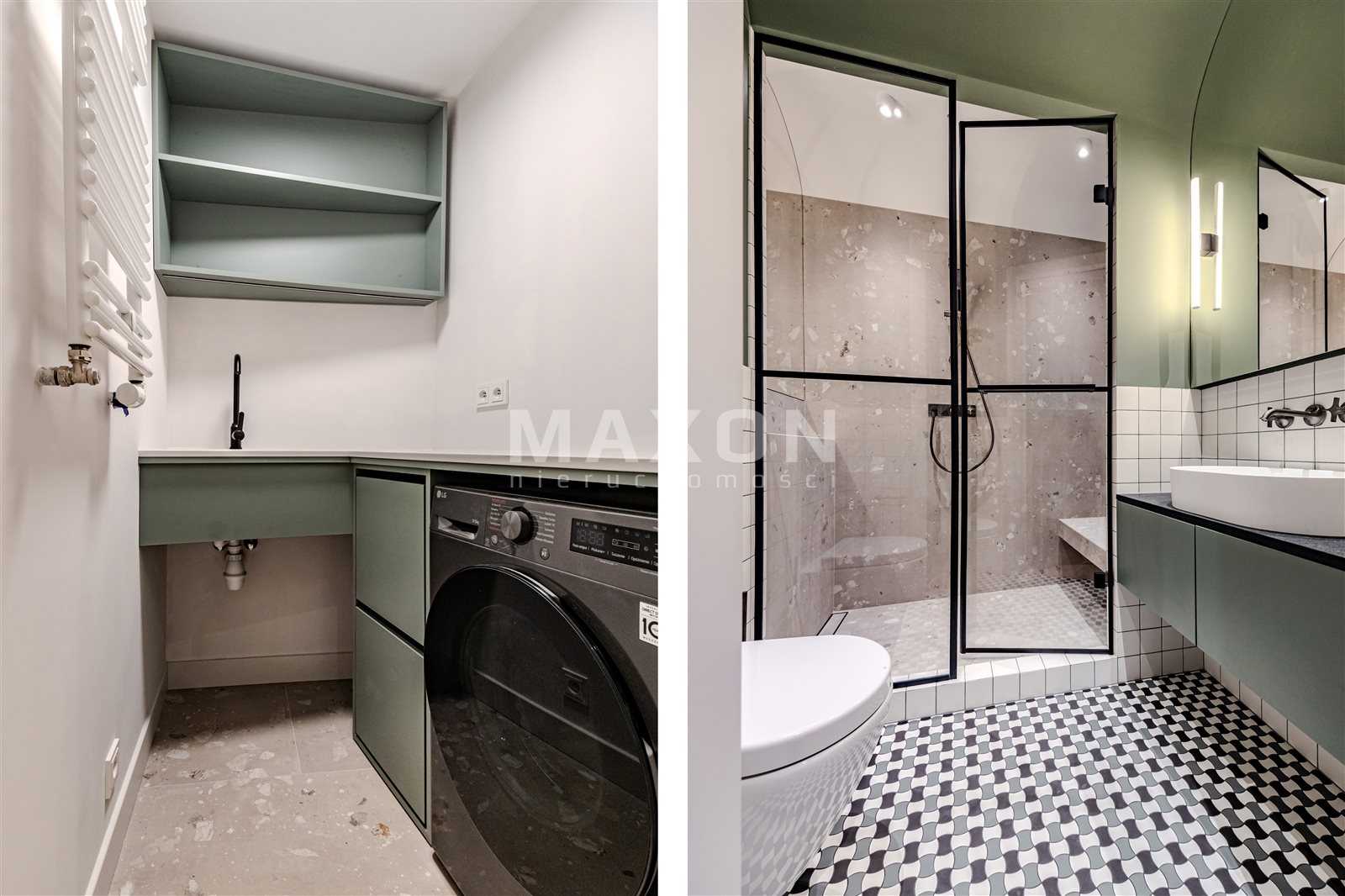 - Łazienka: nowoczesna i elegancka, wykończona w wysokim standardzie.