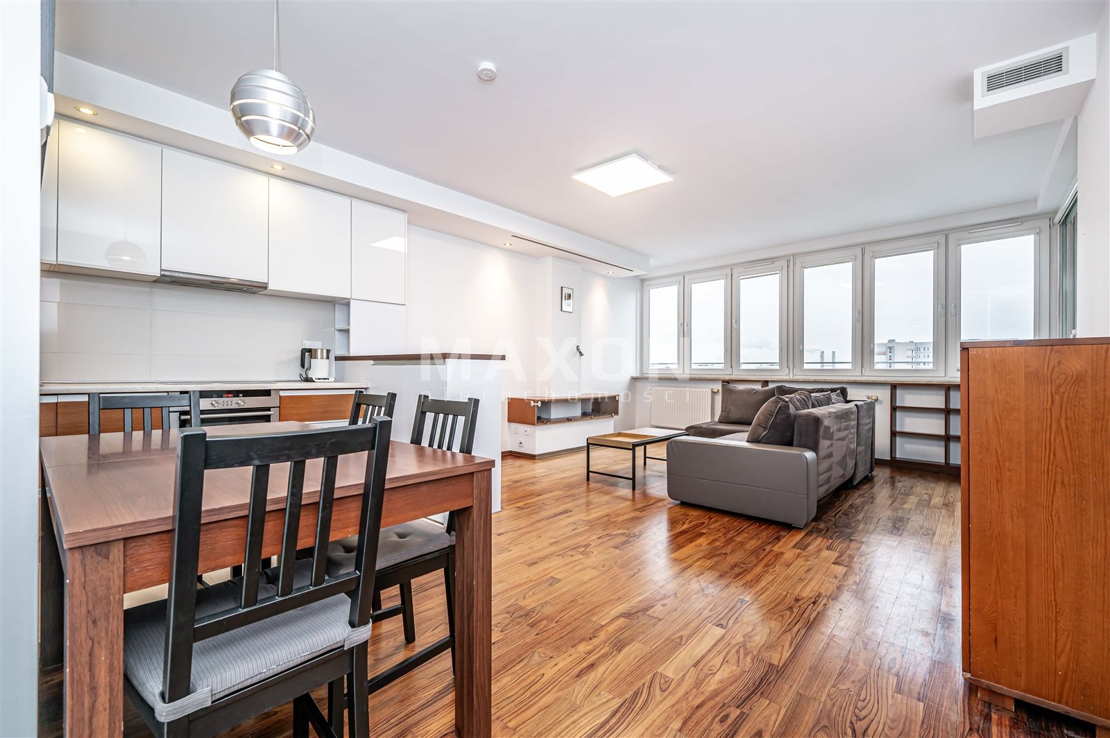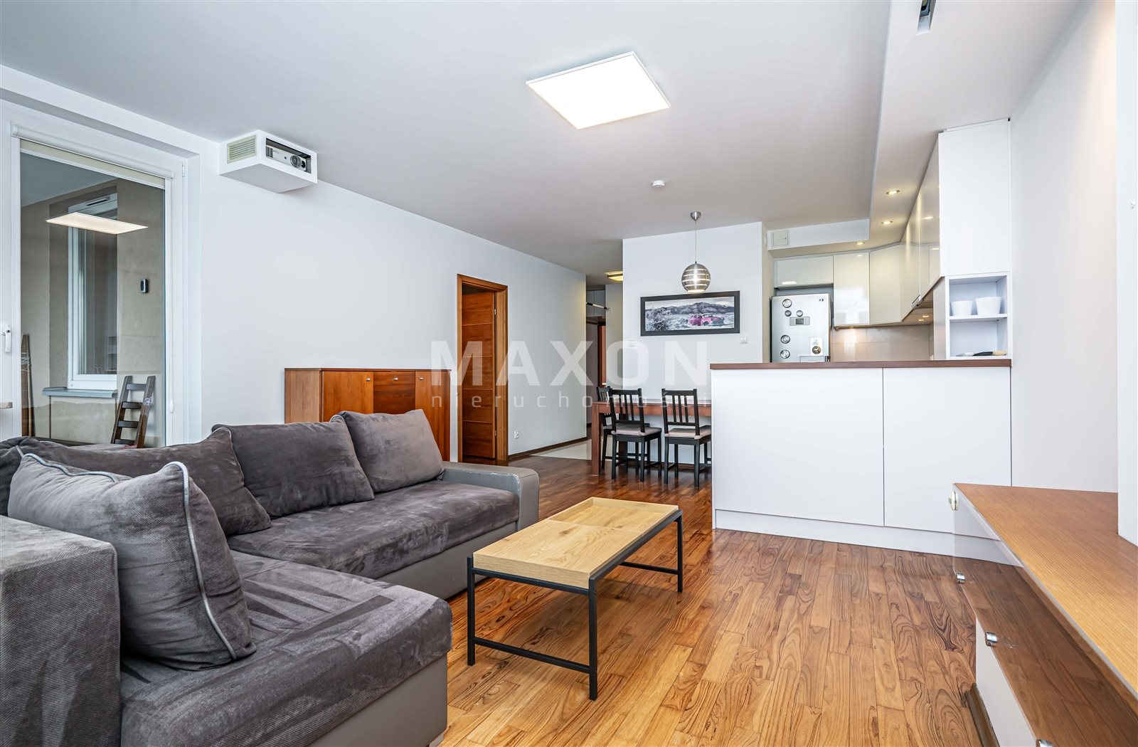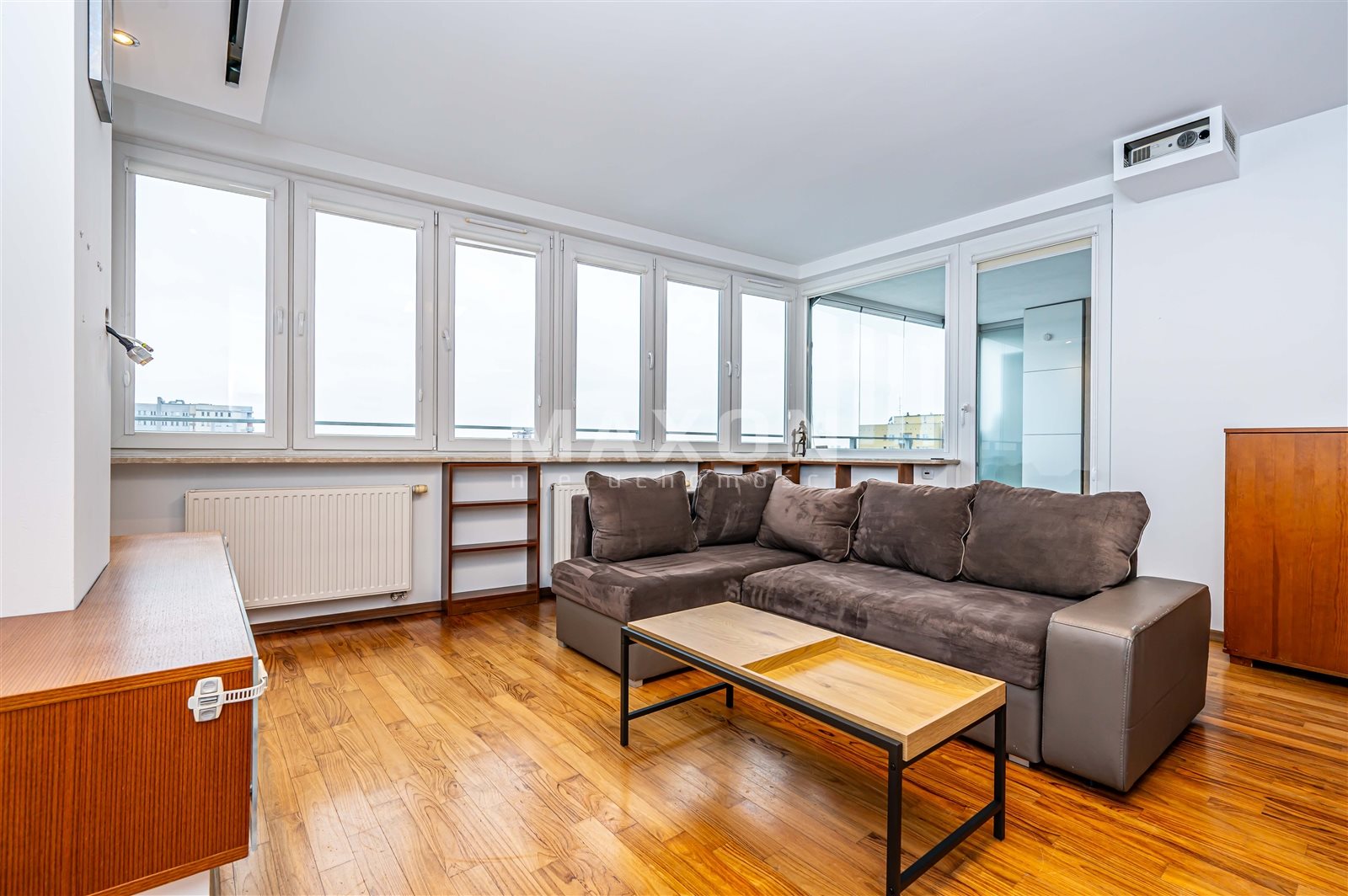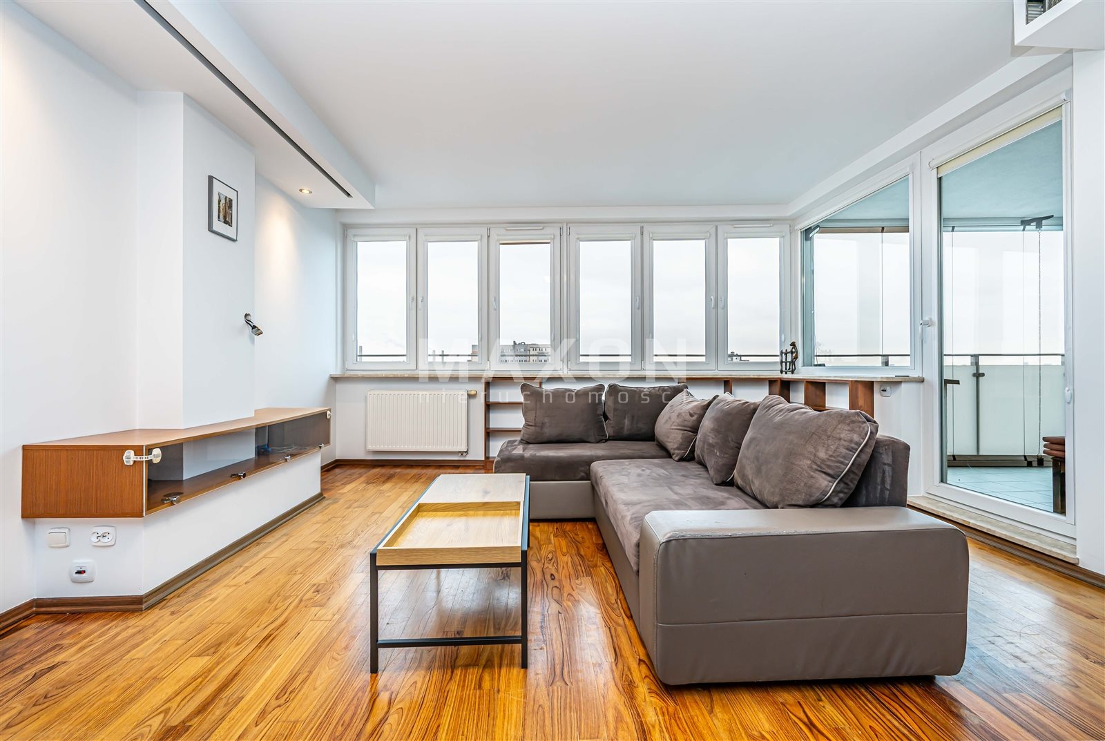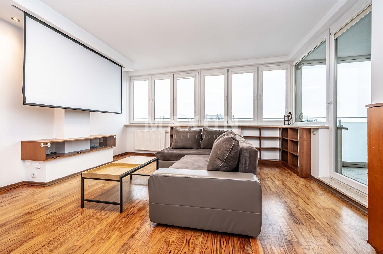 - salon z aneksem kuchennym i wyjściem na duży, oszklony balkon