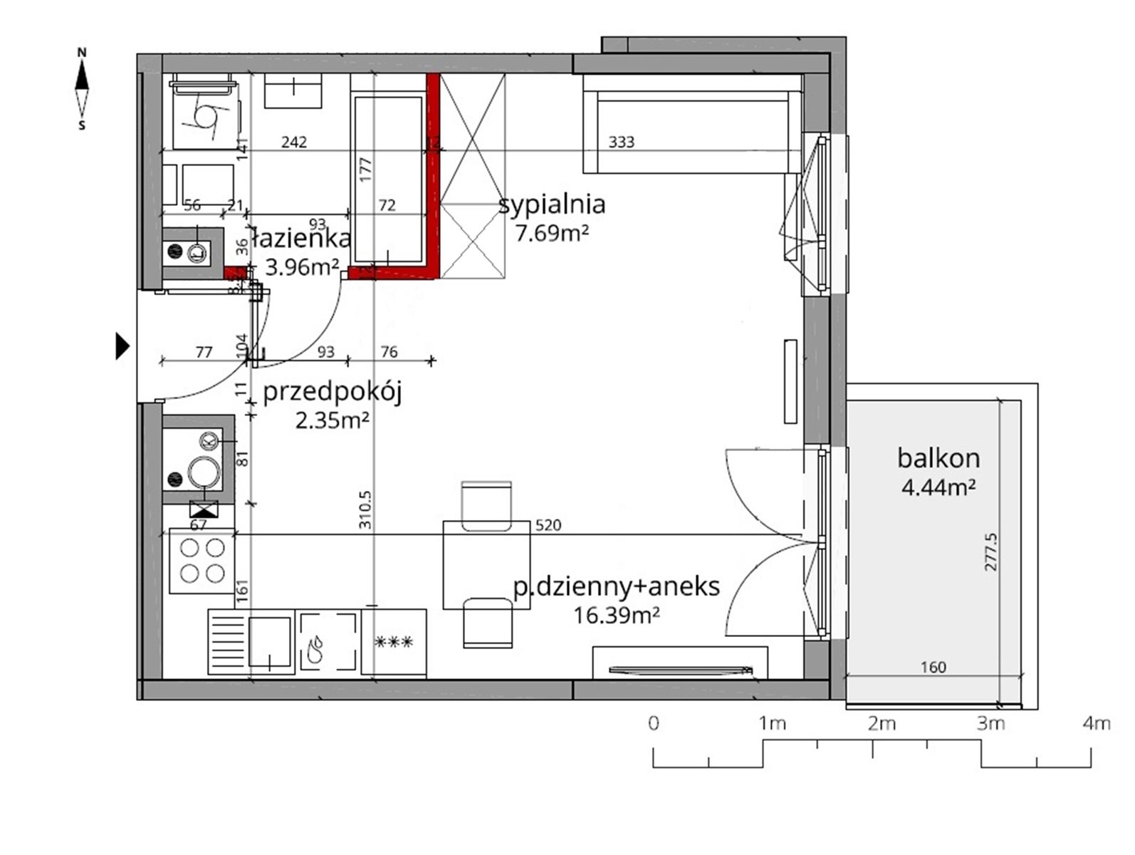 Mieszkanie na wynajem - 30,89 m2, 1 pokój