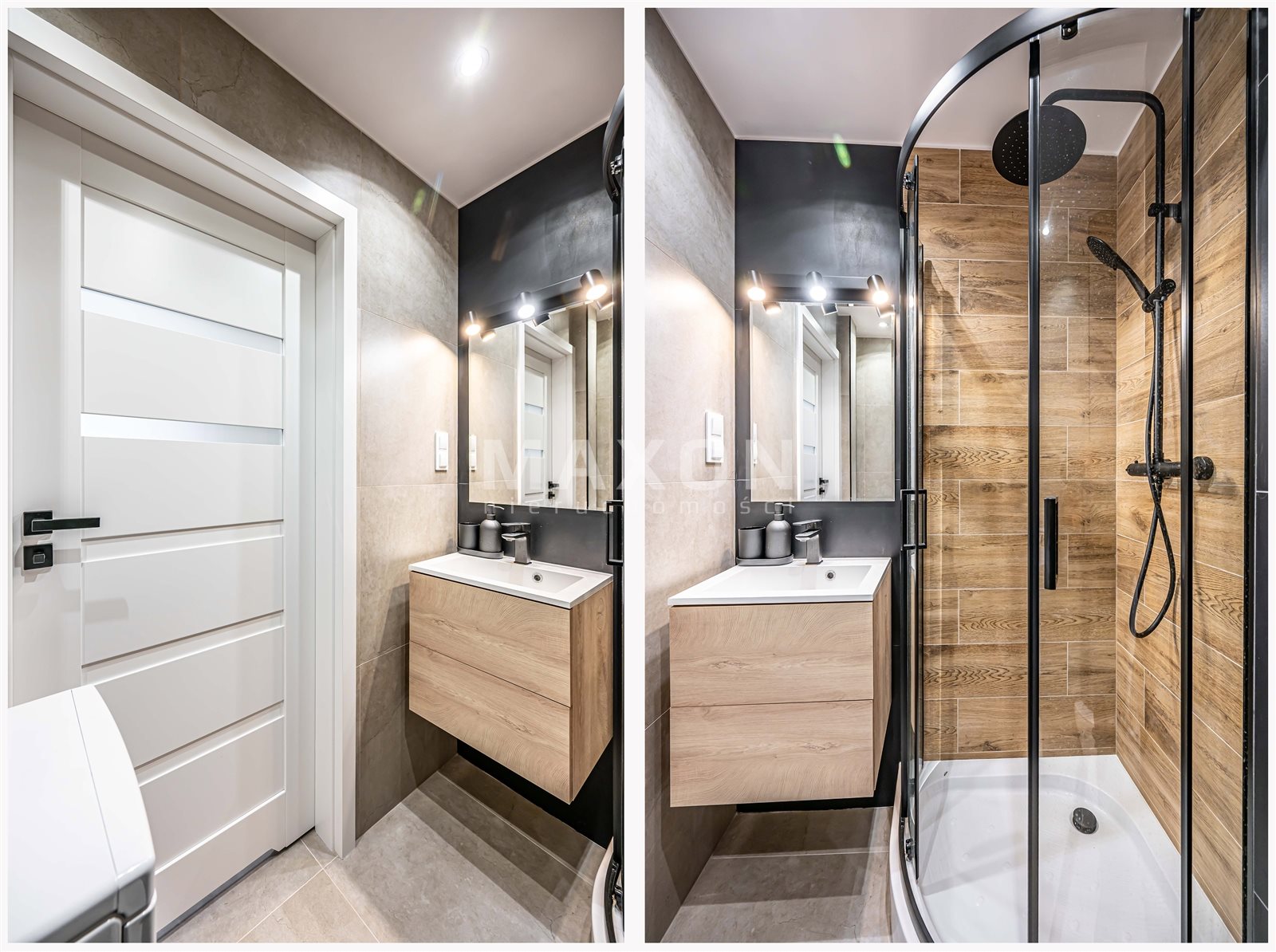 - oddzielnej kuchni z prześwitem na salon (na wyposażeniu: meble kuchenne, lodówka, płyta indukcyjna, zmywarka),