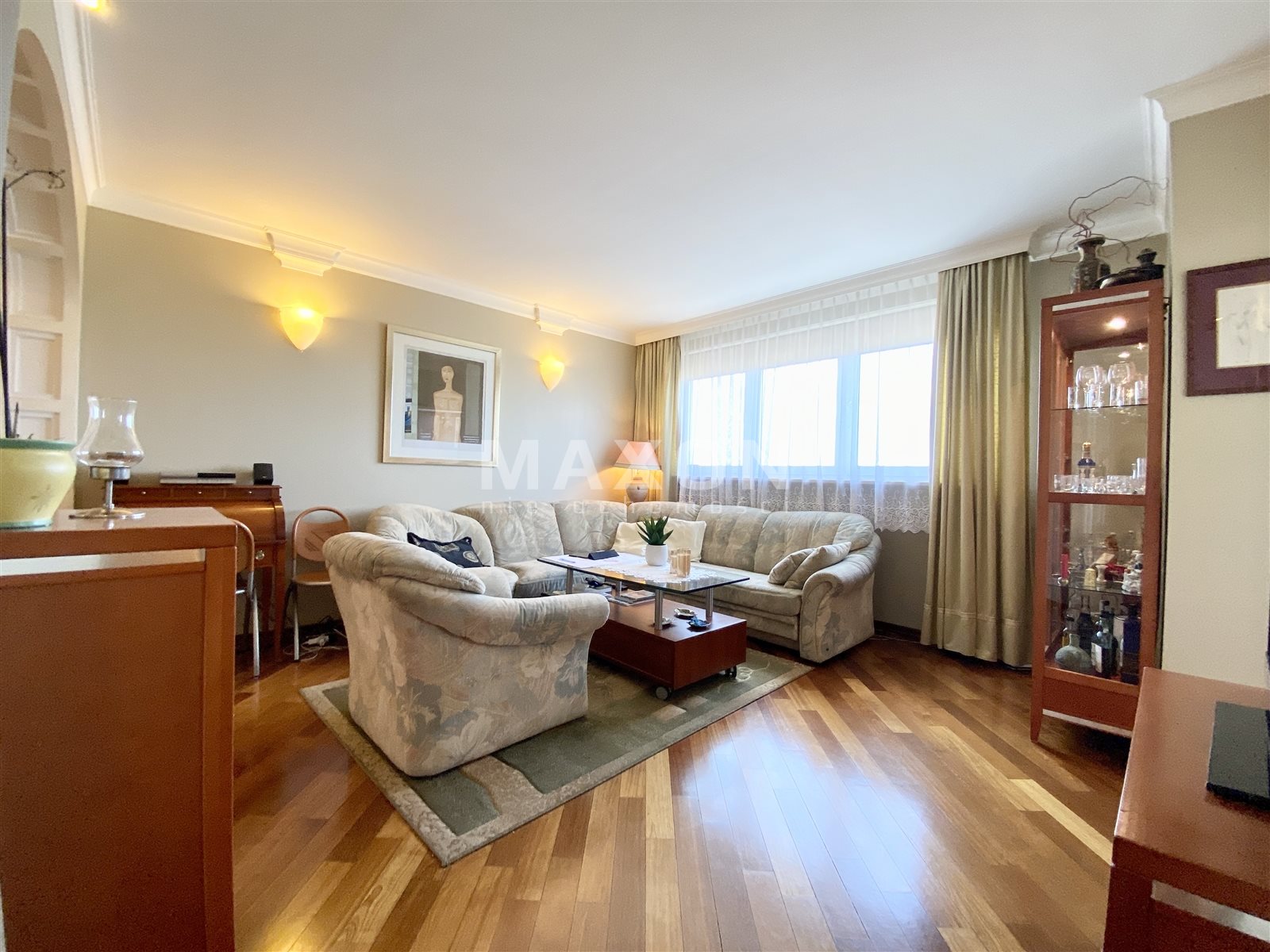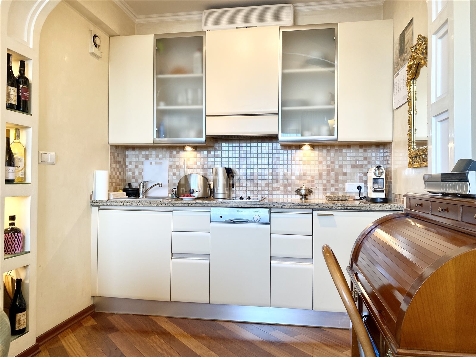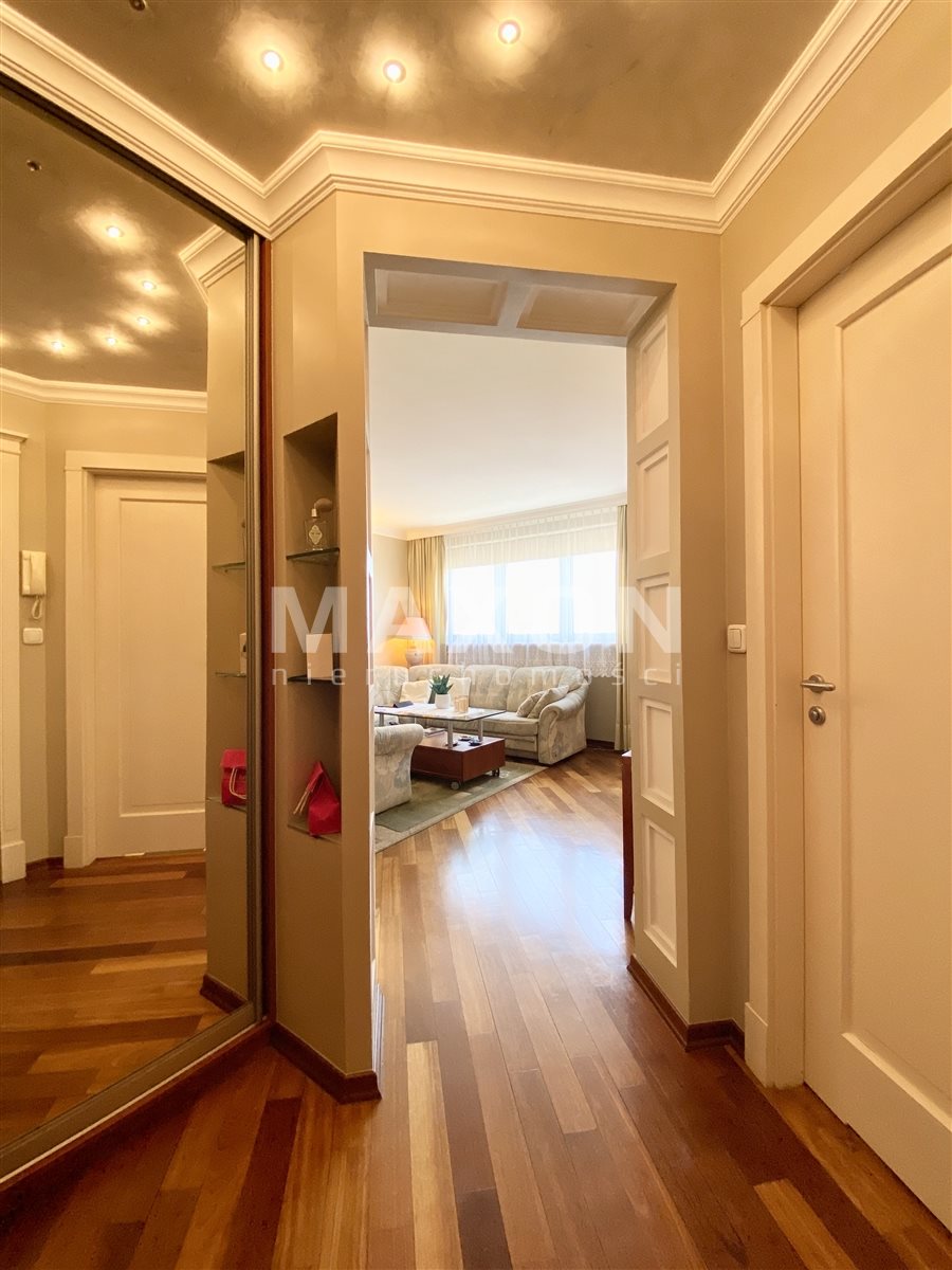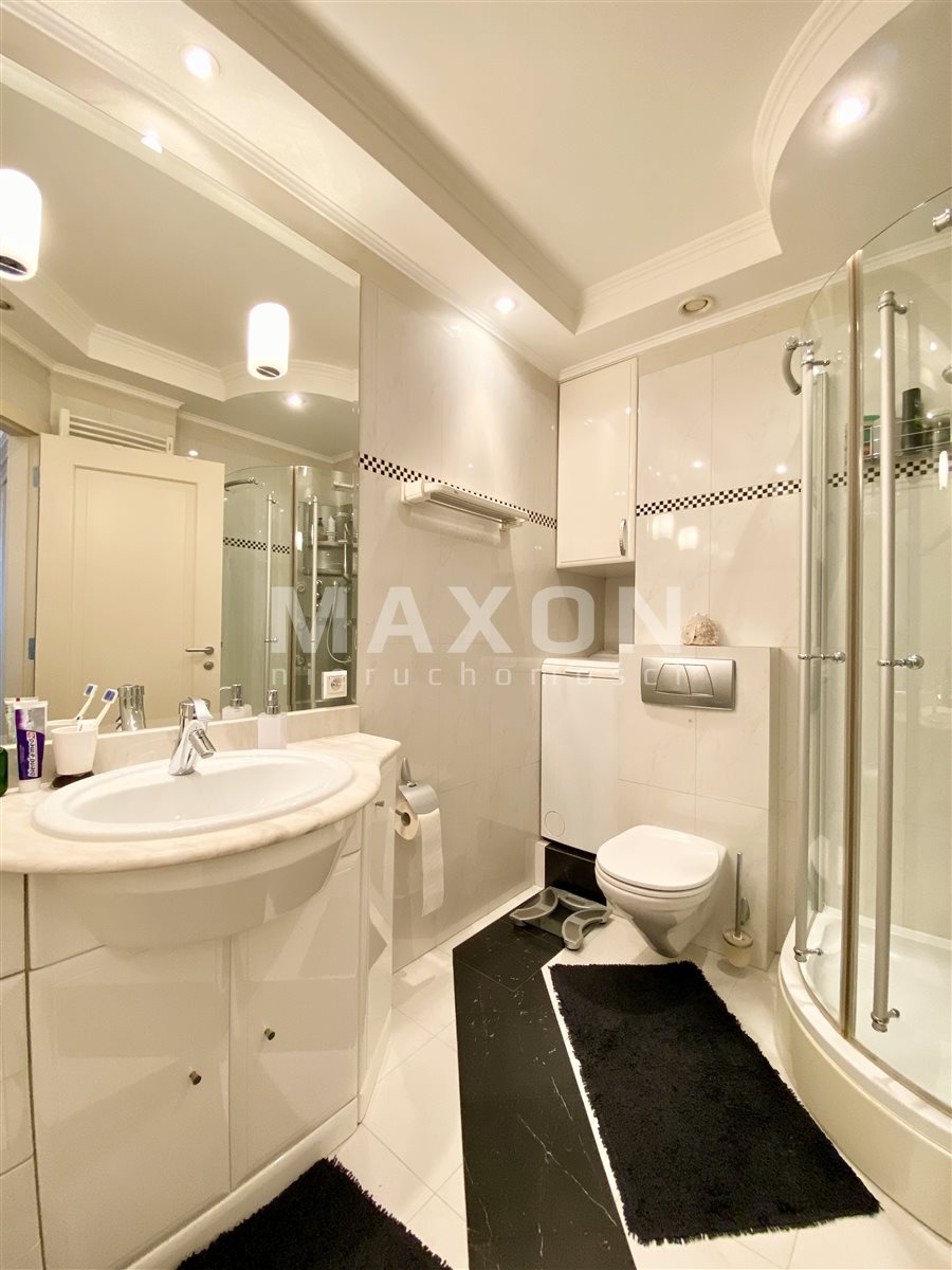 Mieszkanie wykończone najlepszymi materiałami – wysokiej klasy podłogi, nowoczesna kuchnia z sprzętem AGD premium i eleganckie łazienki.