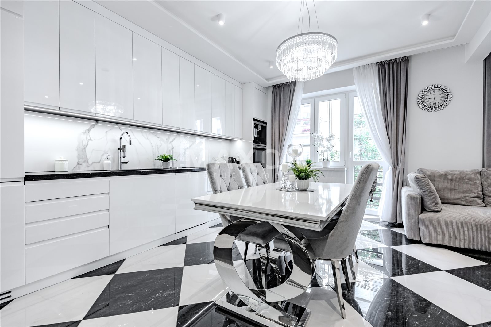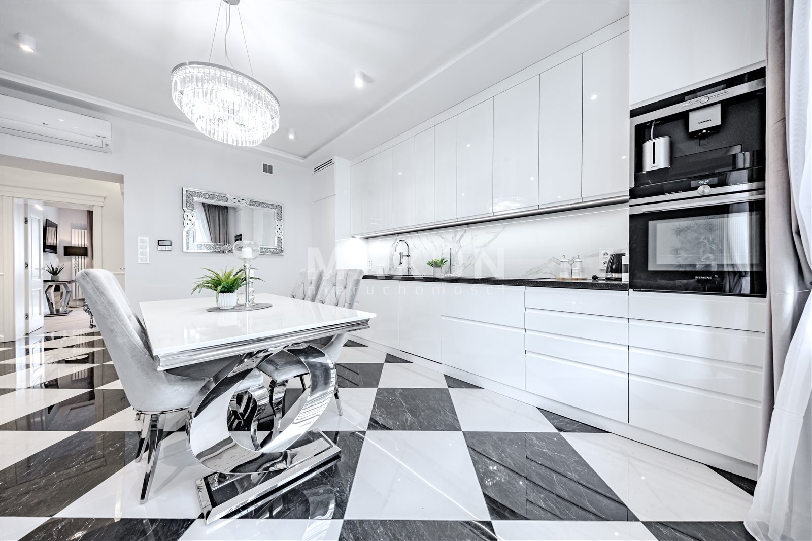 Apartament świeżo po remoncie, wykończony z najlepszej klasy materiałów w tym marmury i kryształy.