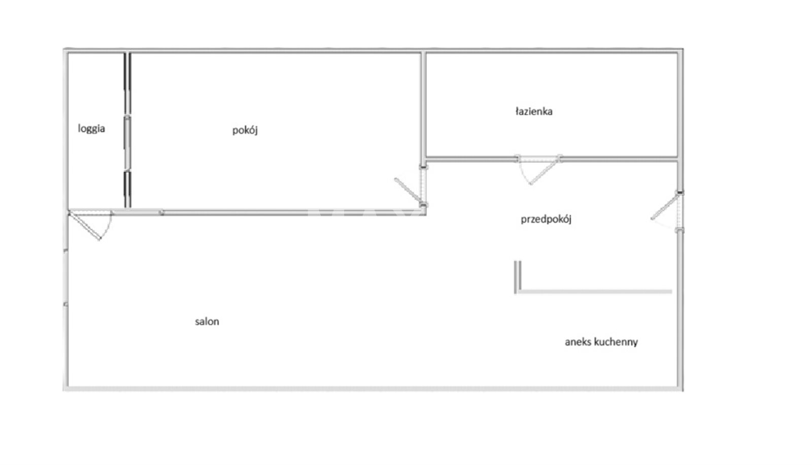 - Salon z aneksem kuchennym – wygodna część dzienna z wyjściem na dużą loggię. Aneks kuchenny wyposażony w sprzęty AGD.