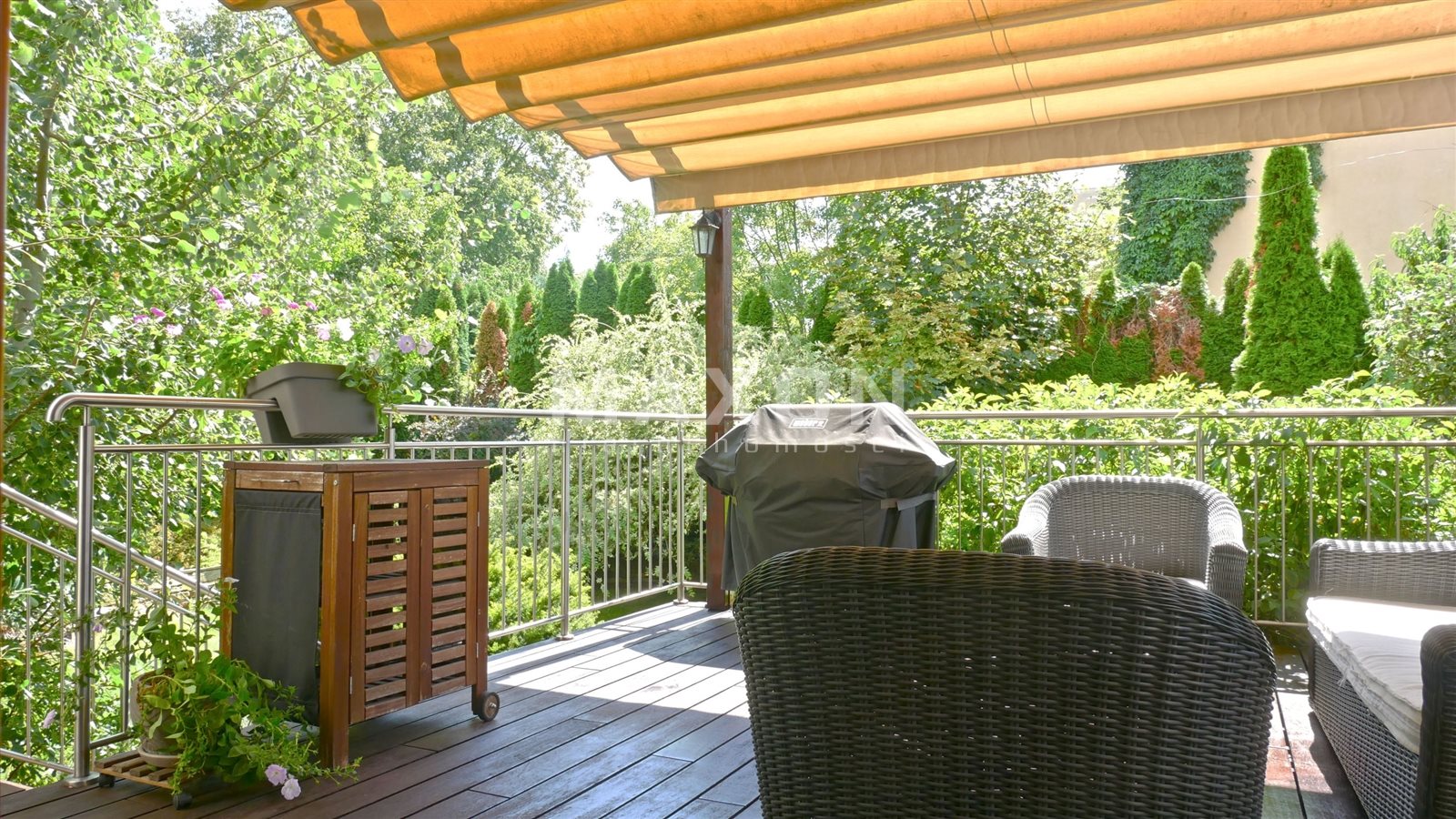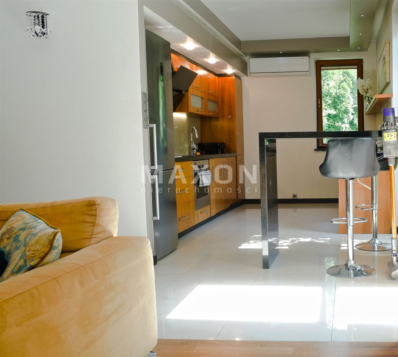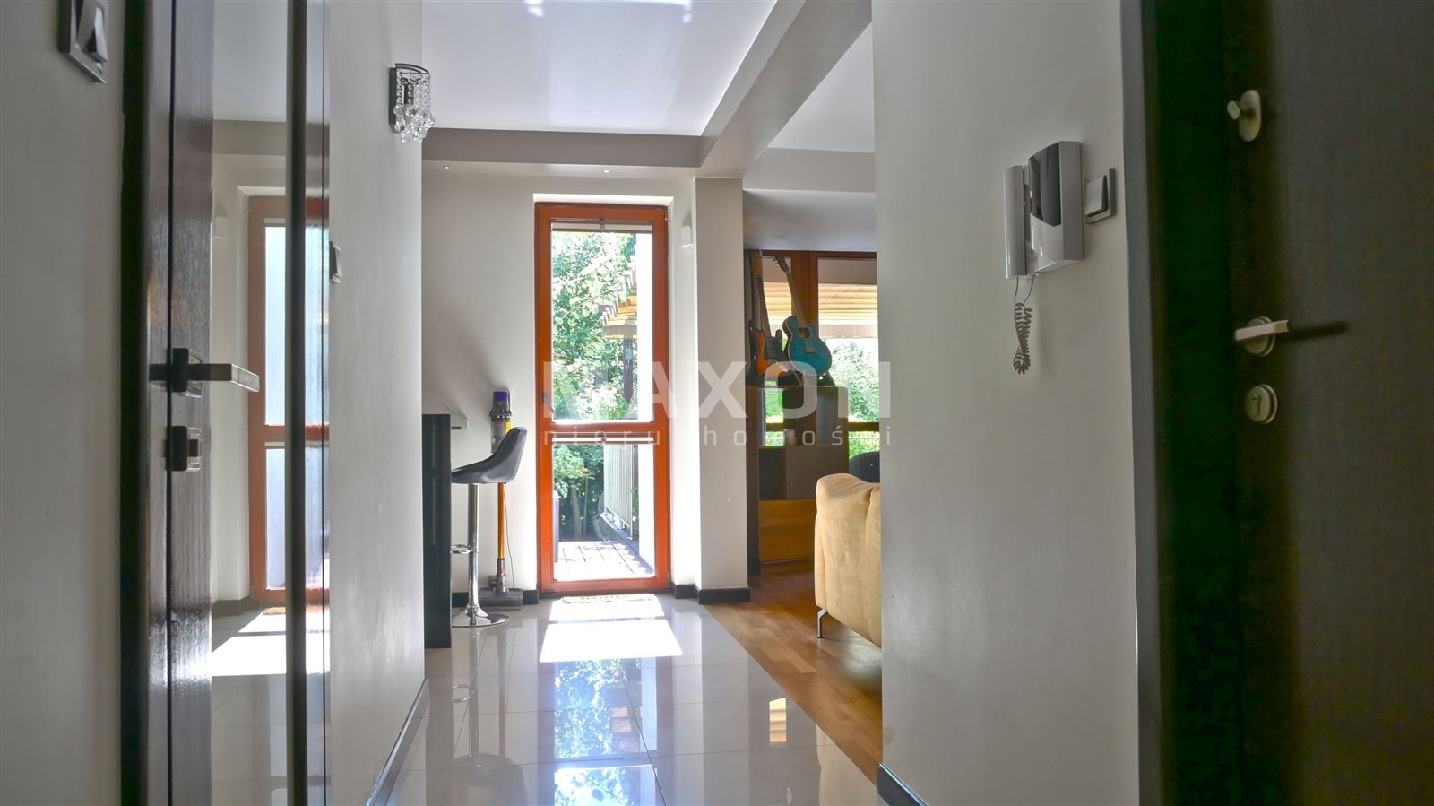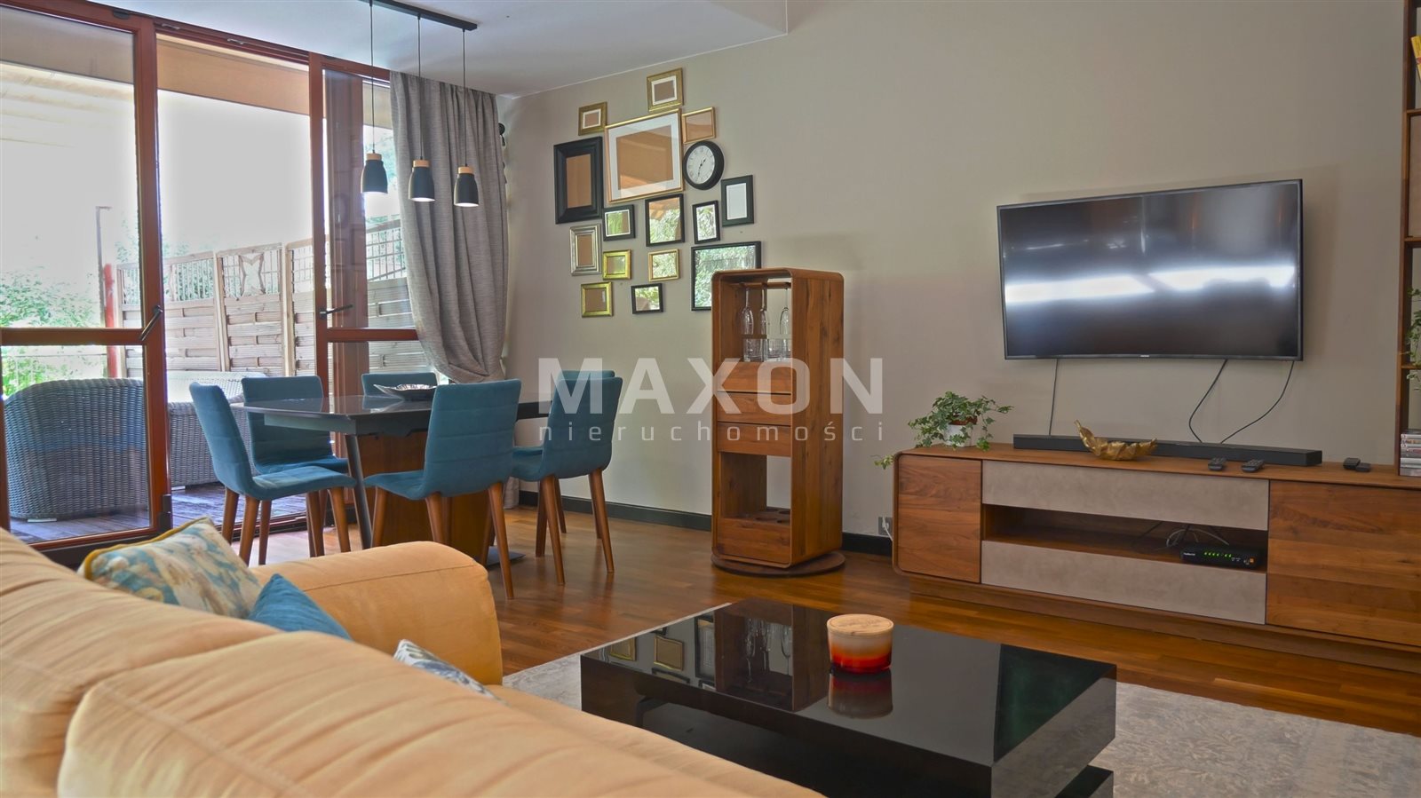 Apartament mieści się w kameralnym budynku w otoczeniu zabudowy jednorodzinnej i szeregowej. Jego największym atutem jest prywatny, pięknie zaaranżowany ogród o powierzchni 300 m², całkowicie niewidoczny z innych budynków, zapewniający ciszę i intymność. Do dyspozycji taras (30 m²) po świeżym odświeżeniu, wyposażony w komplet mebli rattanowych, luksusowy grill oraz zwijany dach. Ogród jest łatwy w utrzymaniu dzięki automatycznemu systemowi nawadniania (5 sekcji) i posiada liczne nasadzenia. Na terenie znajduje się też drewniany domek na narzędzia i sprzęt rekreacyjny. Bardzo cicha okolica sprawia, że to idealne miejsce do relaksu po pracy.Lokalizacja