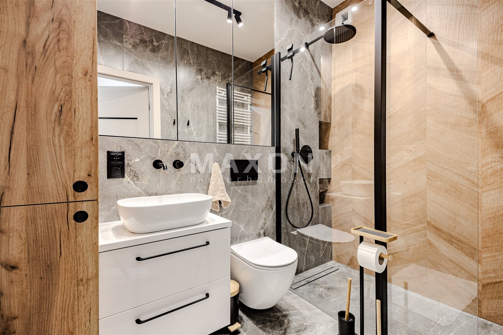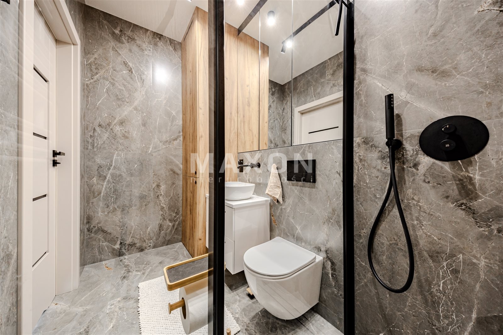 - Łazienka z prysznicem, WC oraz pralko-suszarką,