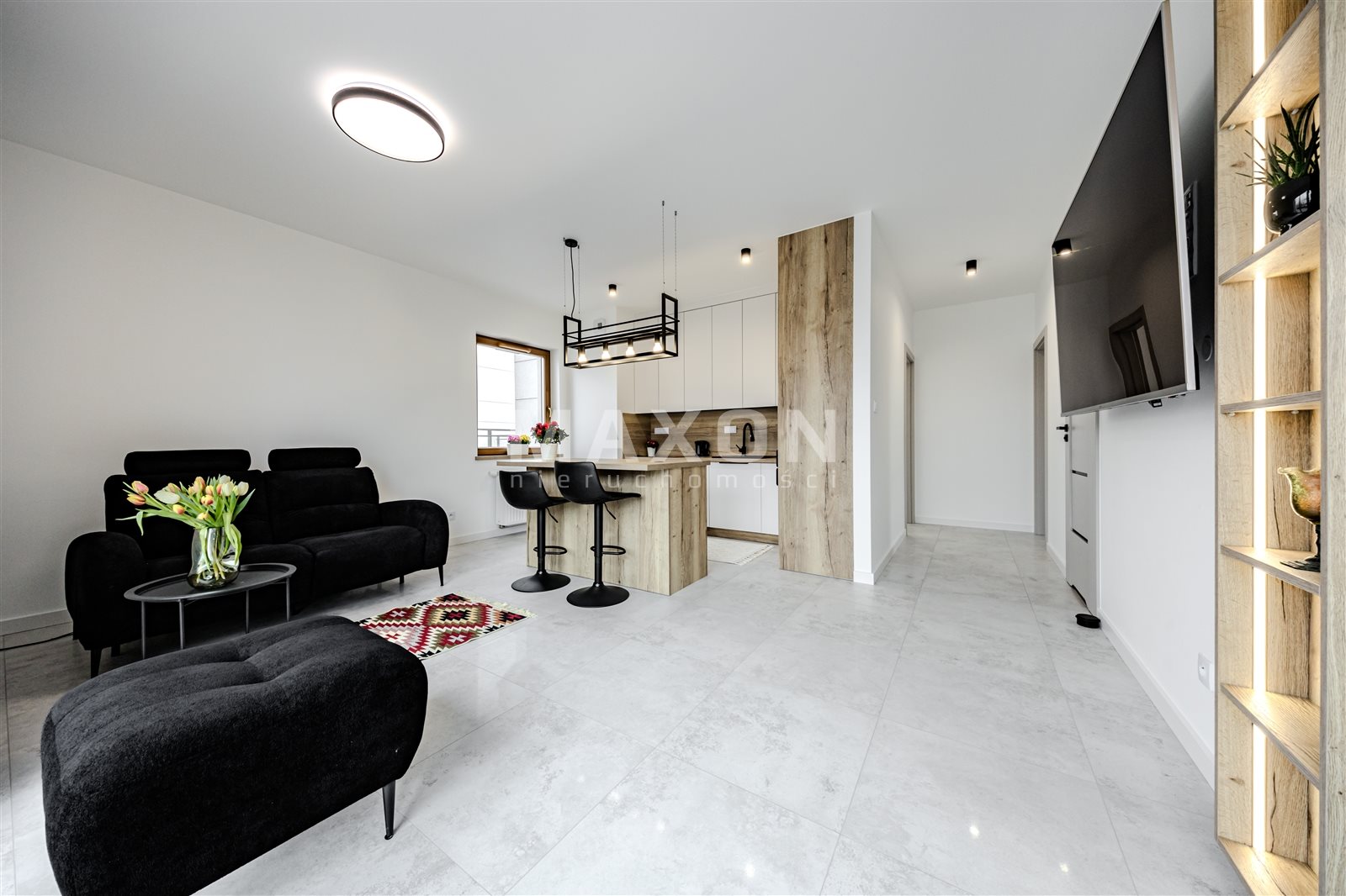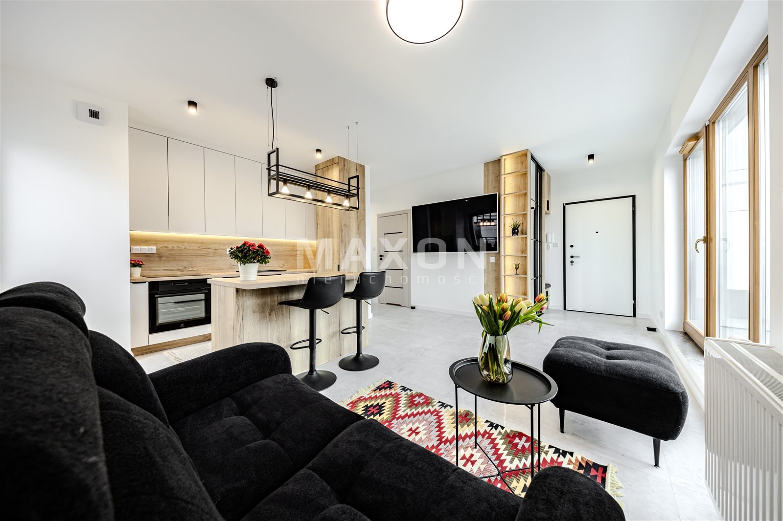 Mieszkanie jest urządzone w wysokim standardzie i zaprojektowane z dbałością o komfort oraz funkcjonalność przestrzeni. Duże okna zapewniają doskonałe doświetlenie wnętrz przez cały dzień.
